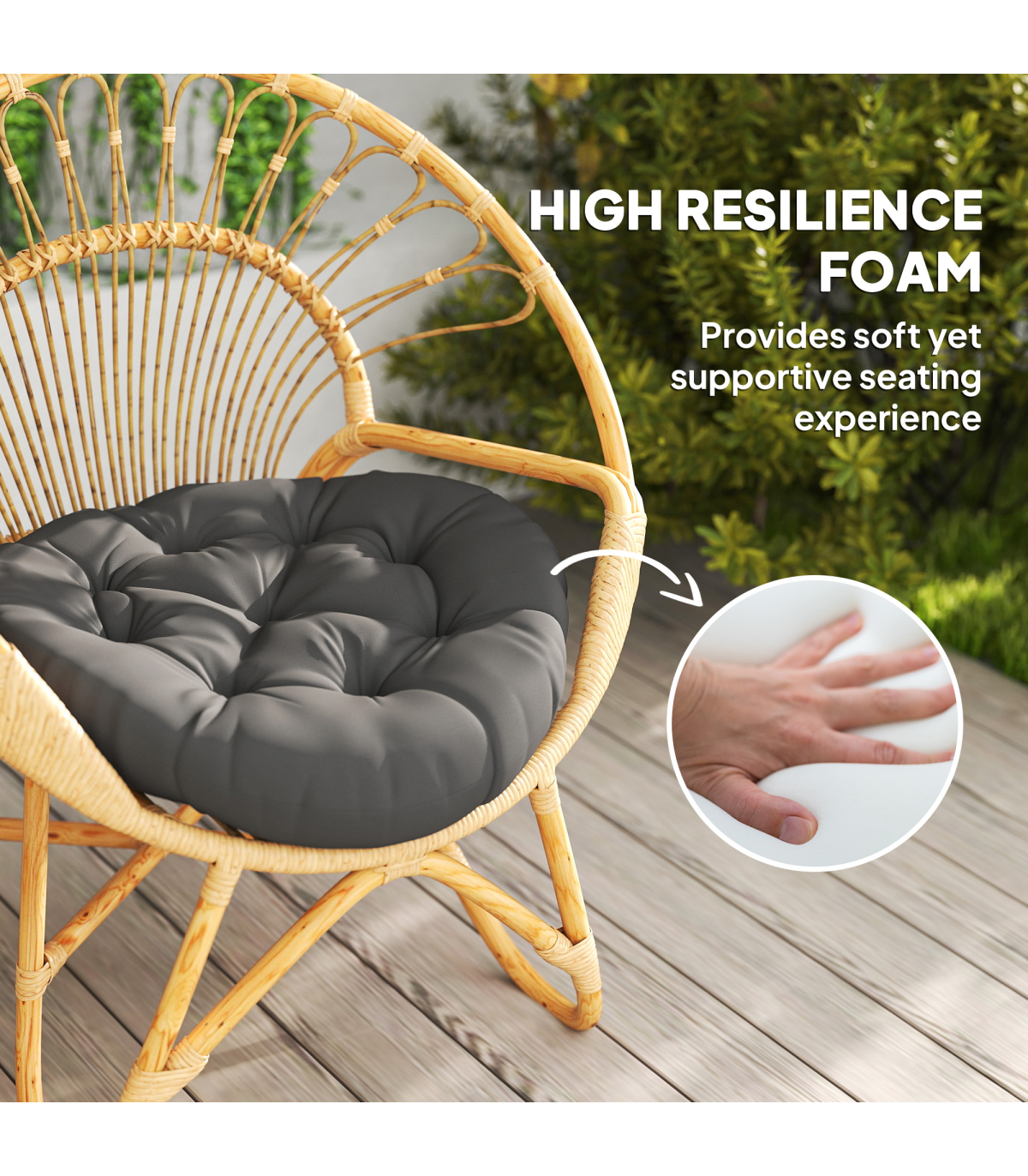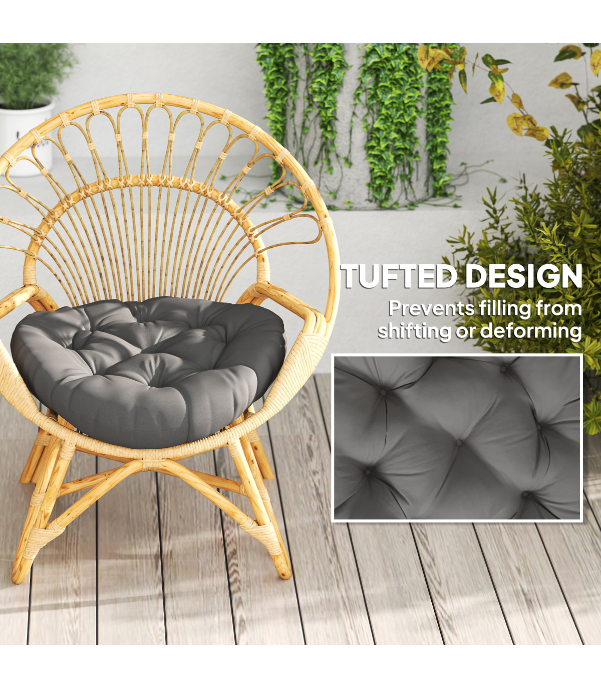 A touch of comfort to your garden lounging, with this set of two Outsunny cushions. These splash-resistant and UV-protected outdoor seat pads are here for a long time. Filled with cotton so you sit comfortably. Complete with upper tufting to hold in shape.