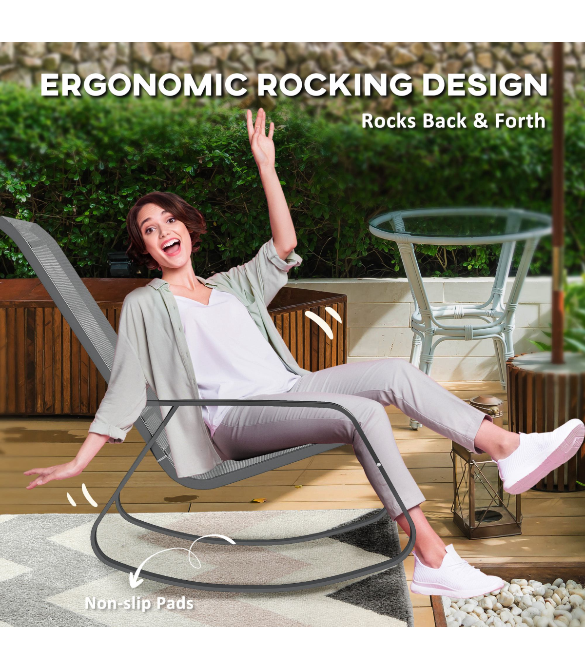 ● Breathable and quick-drying texteline fabric seat is suitable for outdoor use