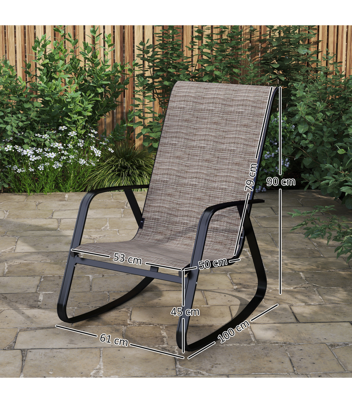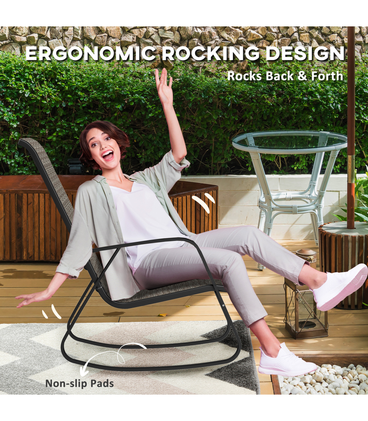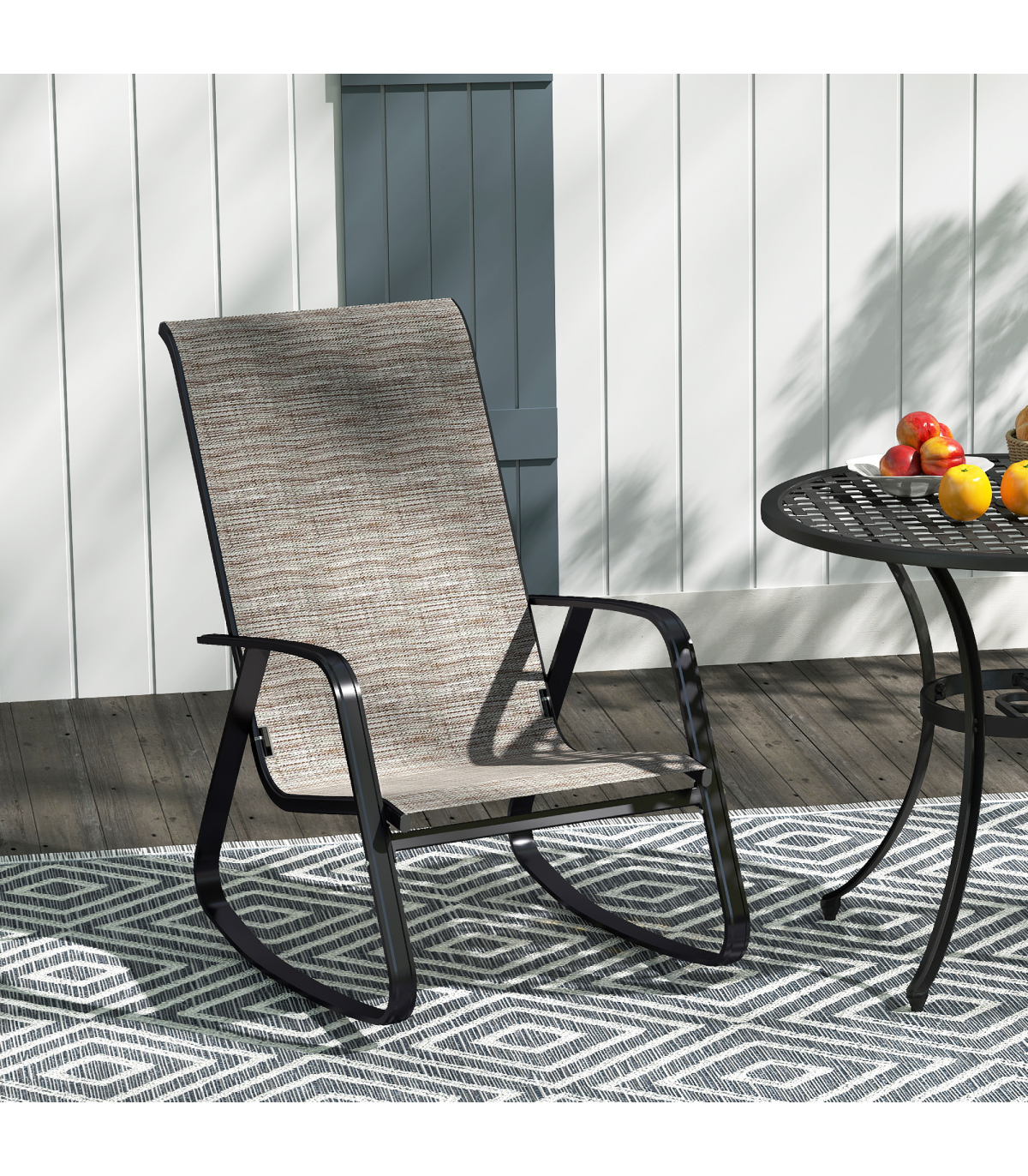 Everyday leisure outdoors, with this Outsunny rocking chair. The rocking base moves between a 110-150° range, for gentle and smooth movement. The seat is made from breathable and quick-drying texteline, making this patio rocking chair comfortable and suitable for outdoor use.