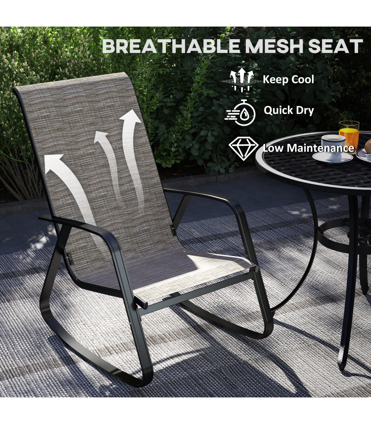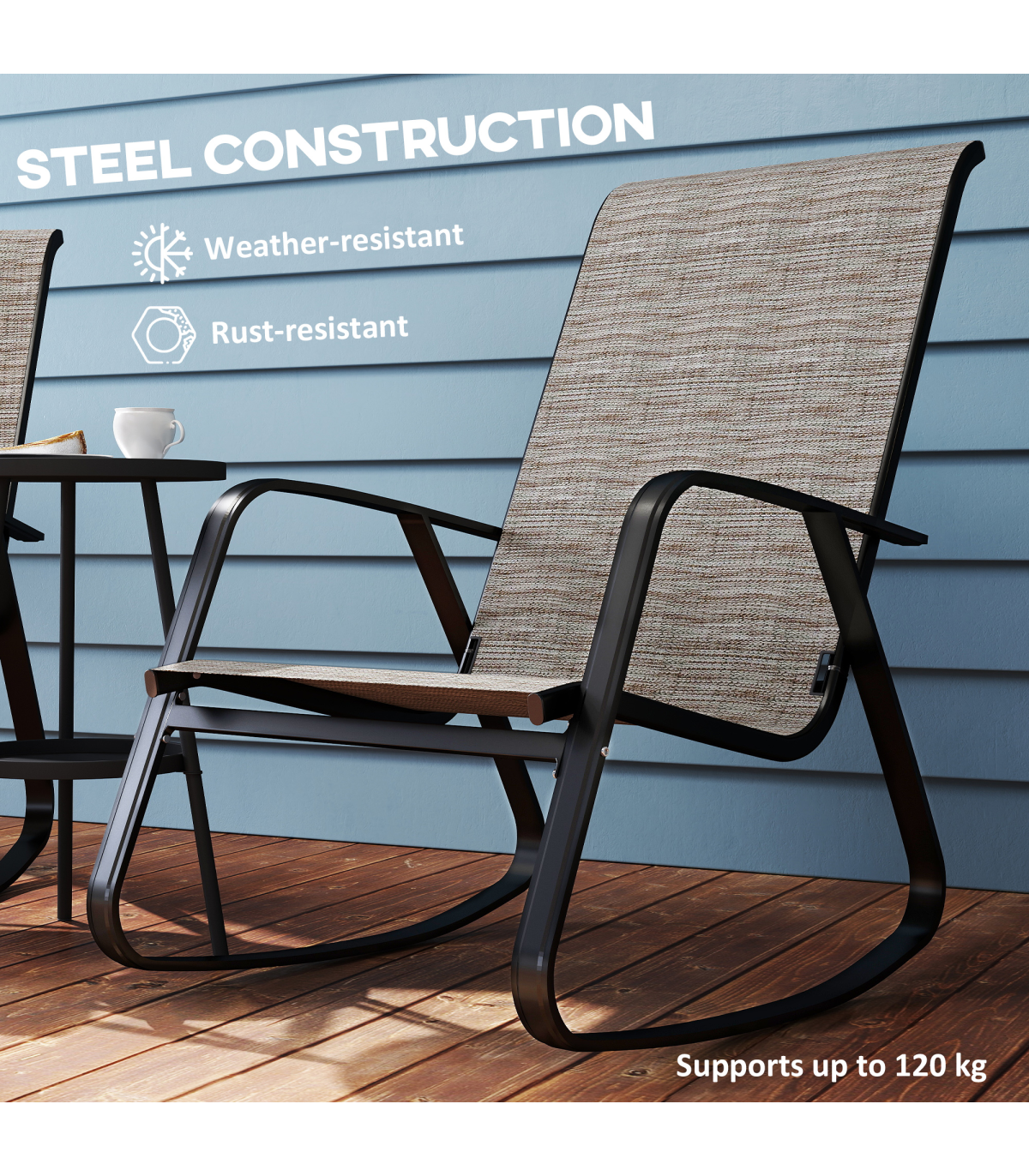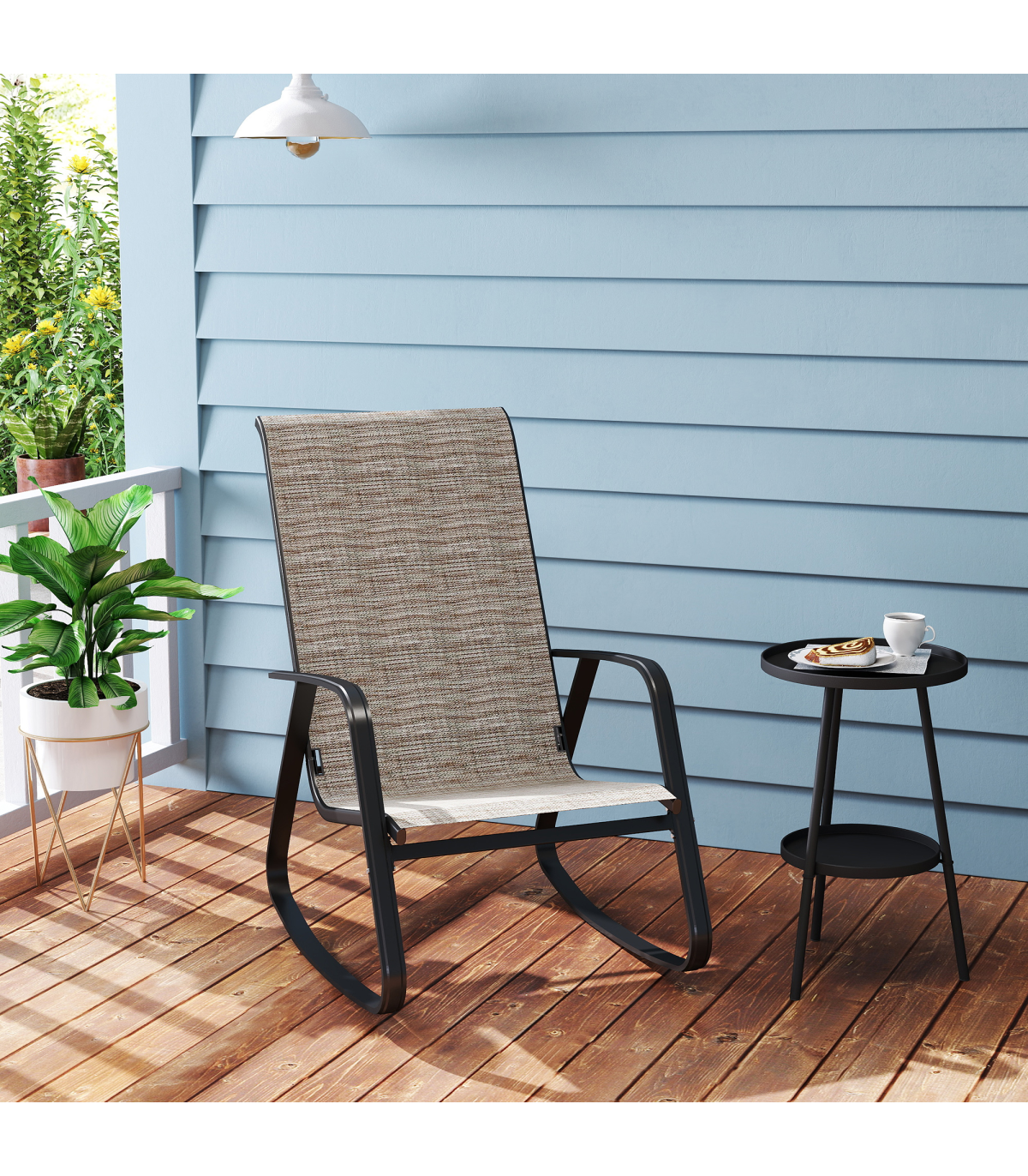 Everyday leisure outdoors, with this Outsunny rocking chair. The rocking base moves between a 110-150° range, for gentle and smooth movement. The seat is made from breathable and quick-drying texteline, making this patio rocking chair comfortable and suitable for outdoor use.
