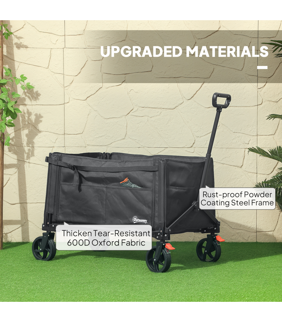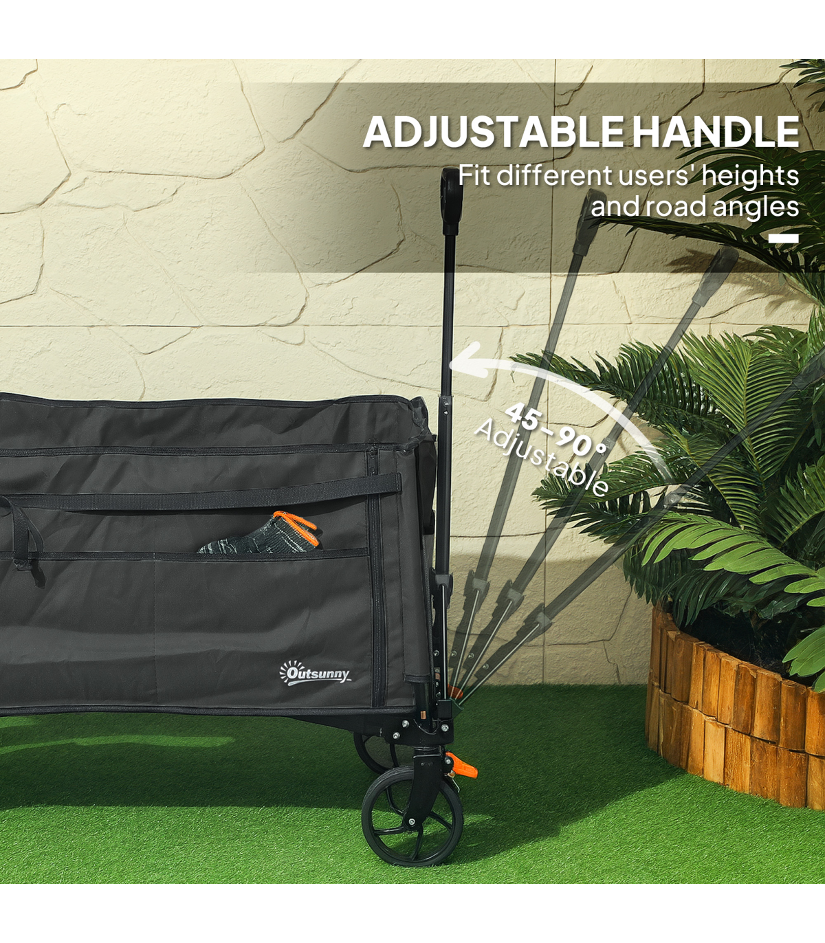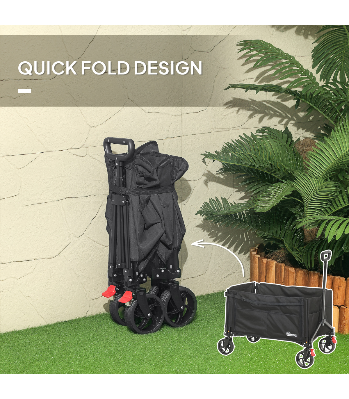 Discover the Outsunny foldable camping trolley, your versatile companion for every adventure! Whether you're camping, gardening or fishing, effortlessly transport bulky items with its flattenable back and side. Keep everything organised with handy side pockets. Effortlessly navigate through any terrain with its 360° rotating wheels and enjoy easy storage as it collapses into a compact size. Great for those on the go!