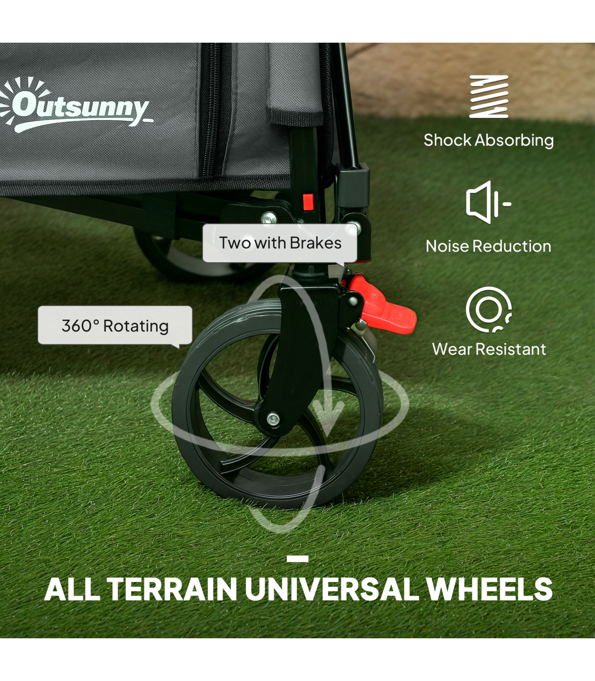 ● 360° rotating wheels for smooth manoeuvrability, brakes on two wheels ensure stability