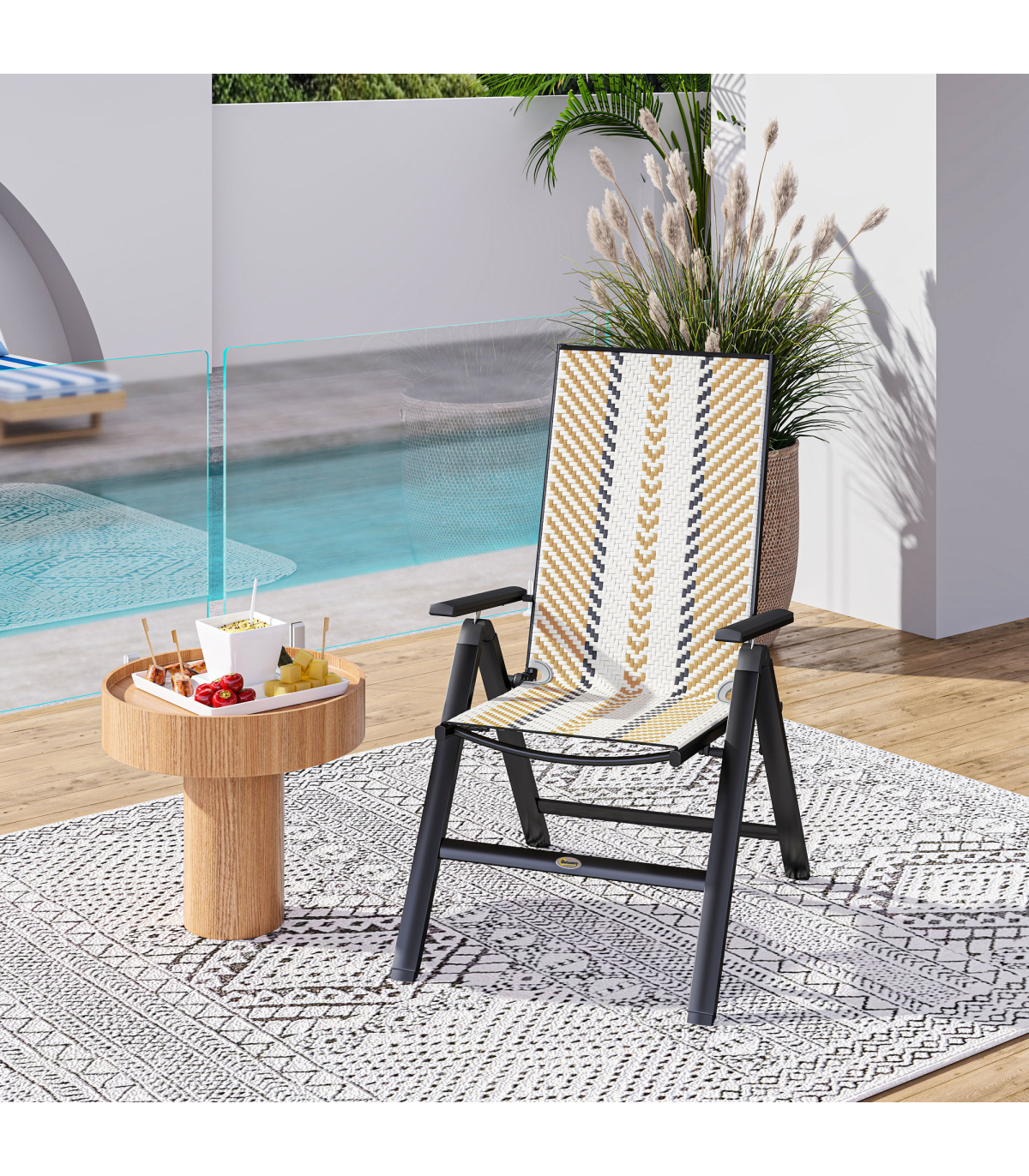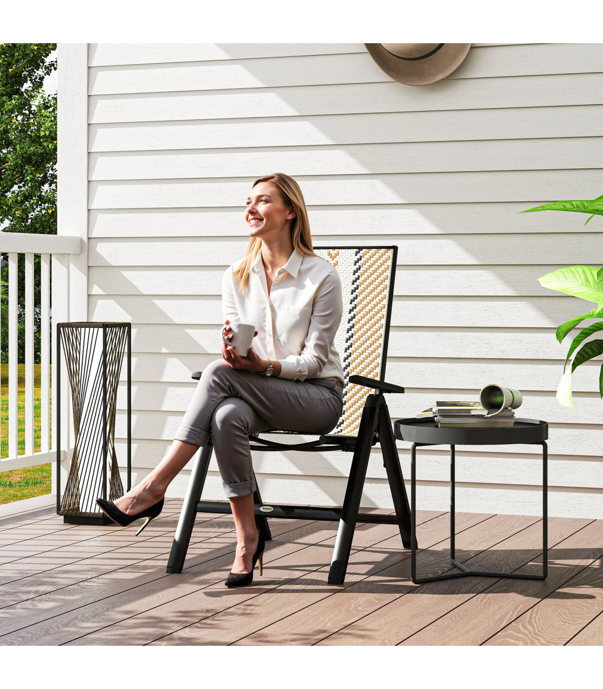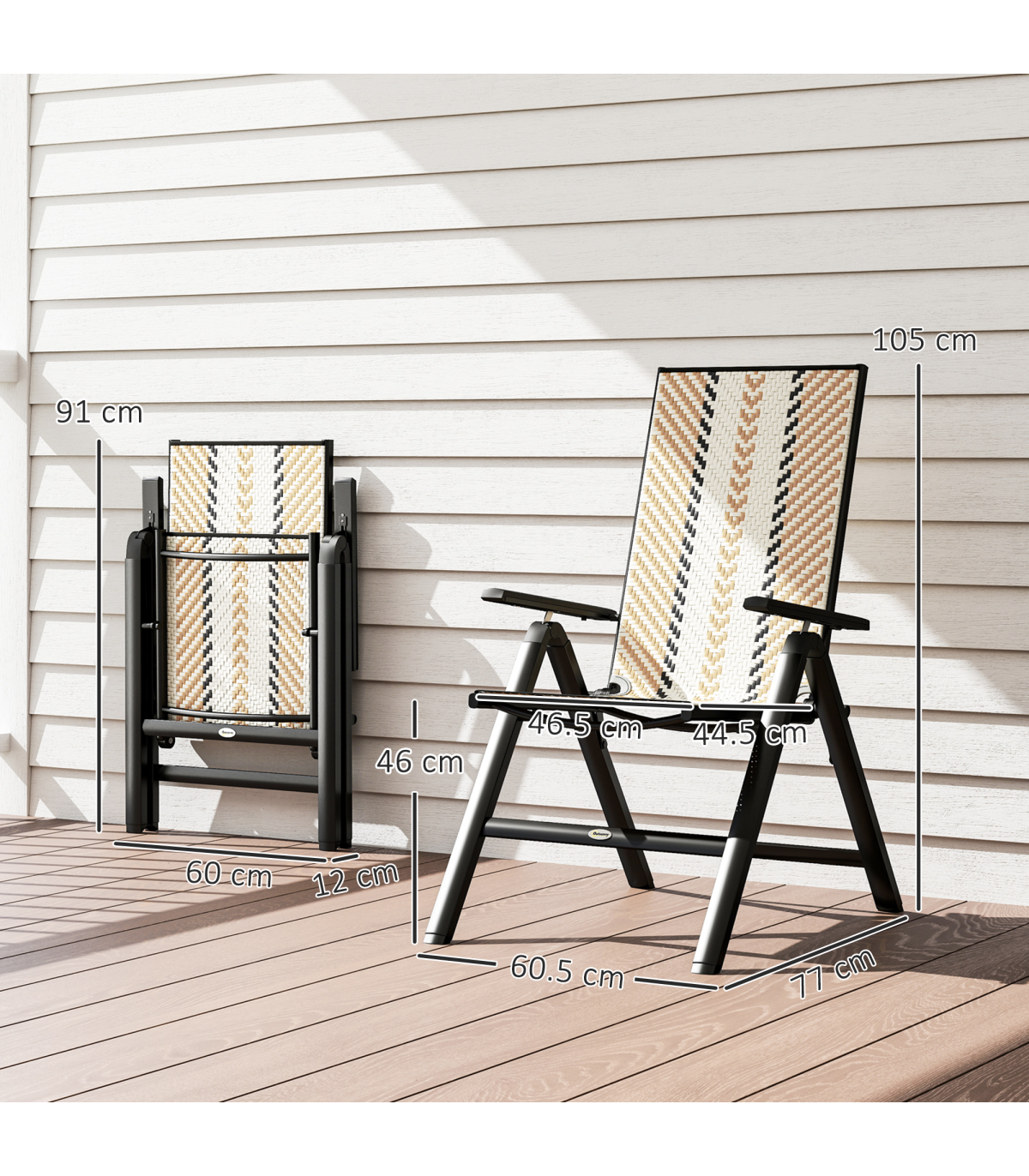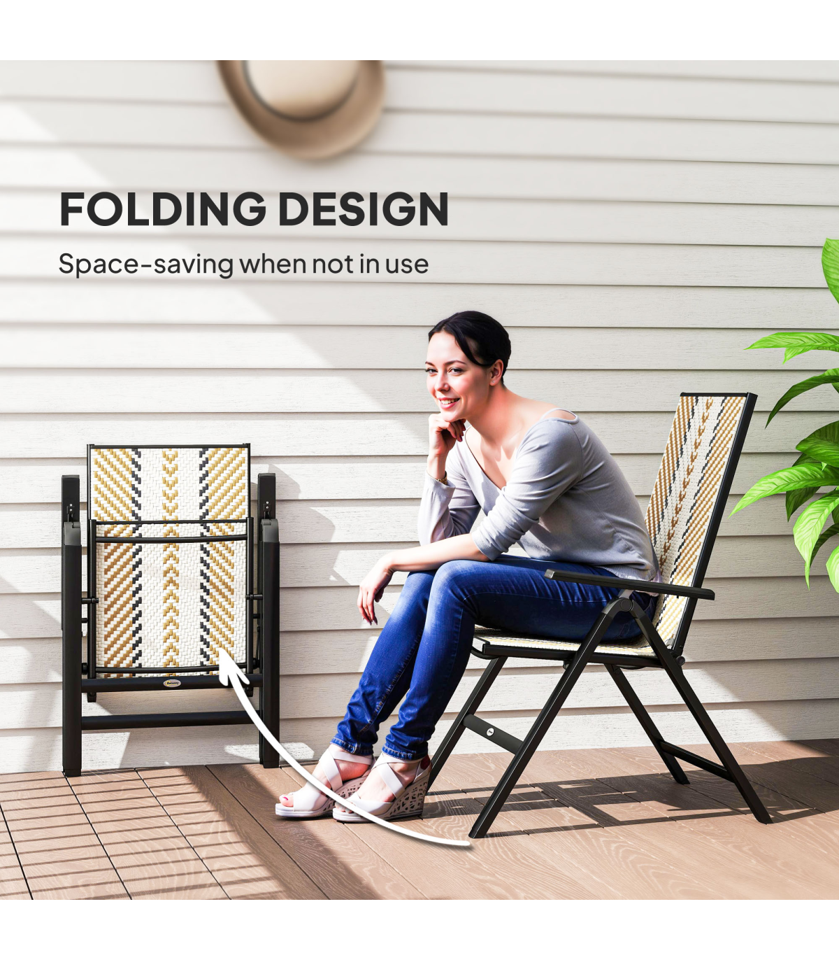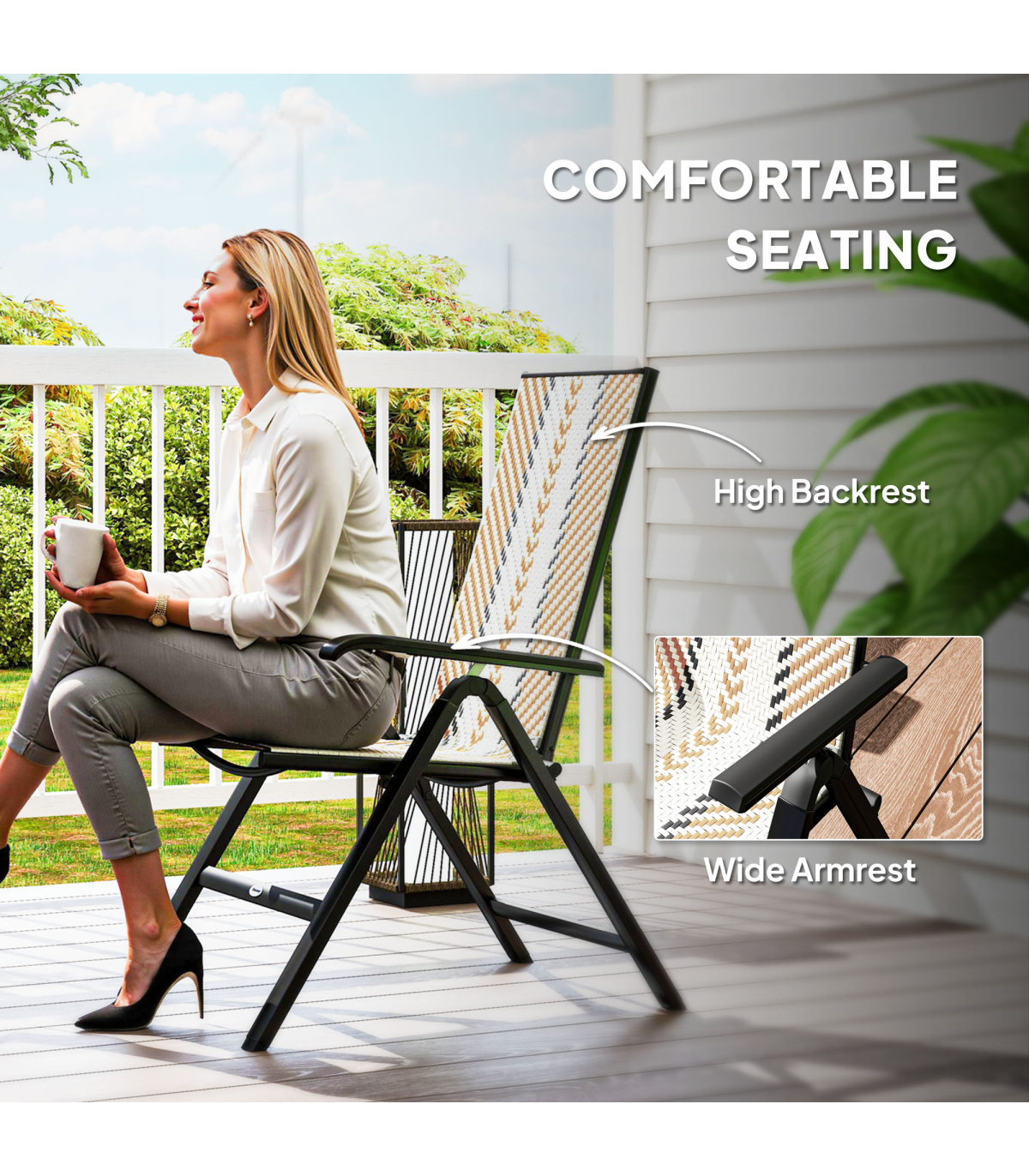 Unfold and relax with these Outsunny folding garden chair. With five adjustable back positions, so you can lie back to the position you want. The hand-woven plastic wicker seat create a stylish and beautiful rattan look. The foldable design makes it easy to store away and bring out, whenever you want.