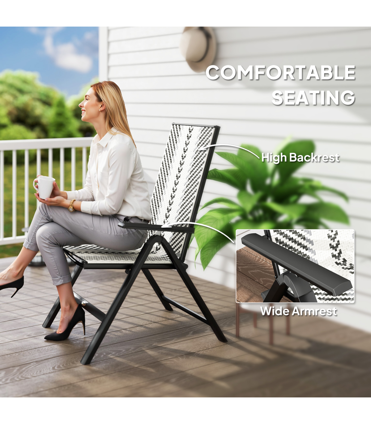Unfold and relax with these Outsunny folding garden chair. With five adjustable back positions, so you can lie back to the position you want. The hand-woven plastic wicker seat create a stylish and beautiful rattan look. The foldable design makes it easy to store away and bring out, whenever you want.
