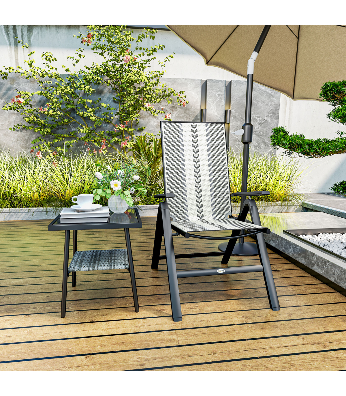 Outsunny Rattan Folding Chair w/ 5-Position Adjustable Backrest, Grey