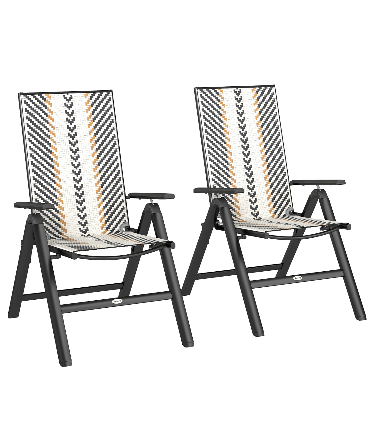 Outsunny 2PCs Rattan Folding Chair w/ 5-Position Adjustable Backrest, Black