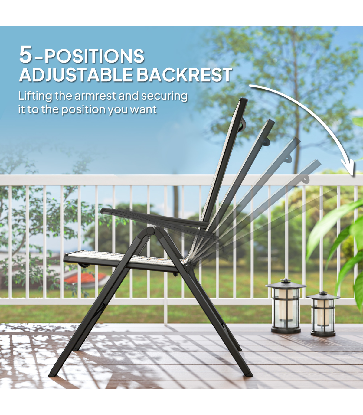 ● Five-position back: adjust to the comfort you want