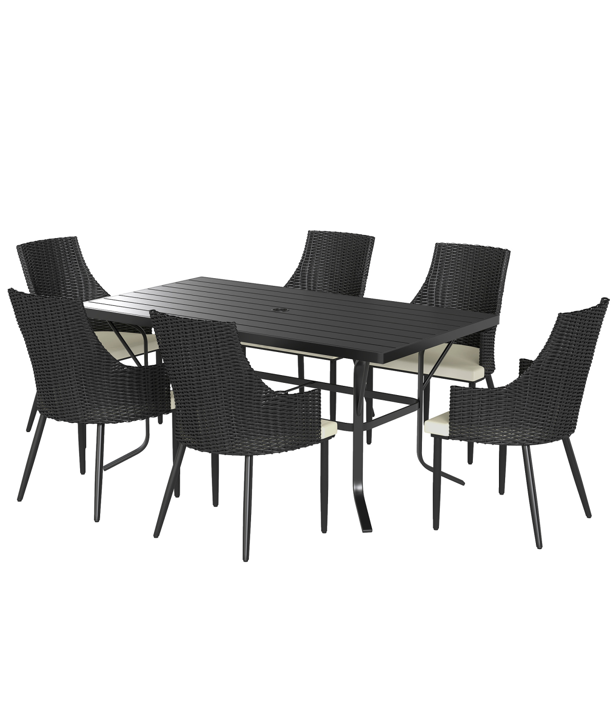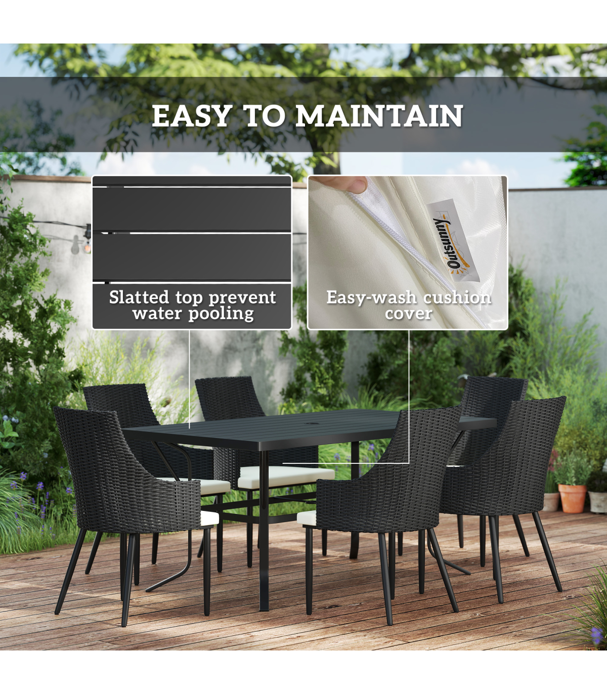 Outsunny 6 Seater Garden Furniture with Cushions, Parasol Hole, Cream White