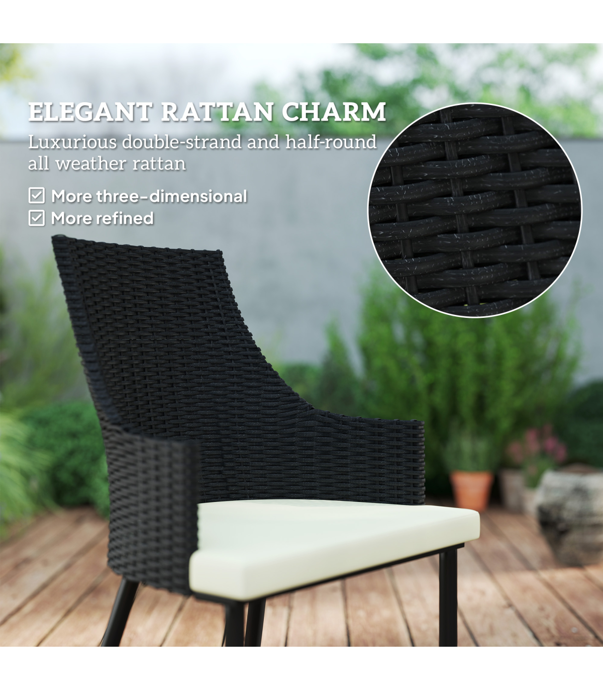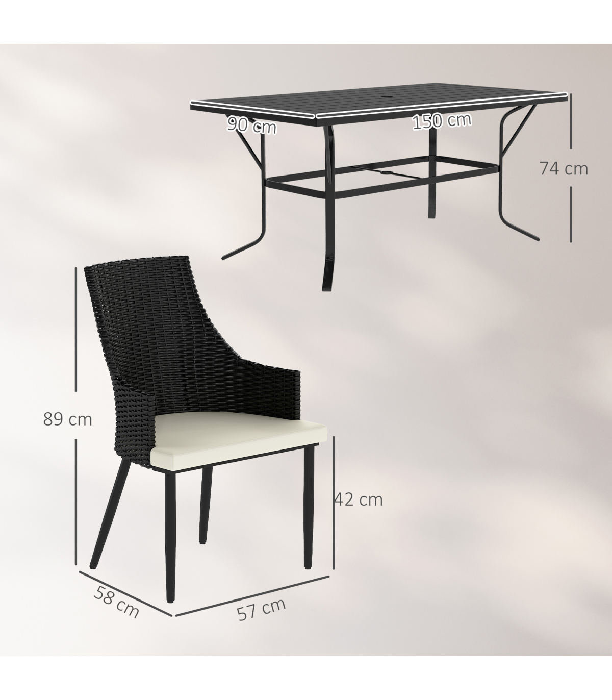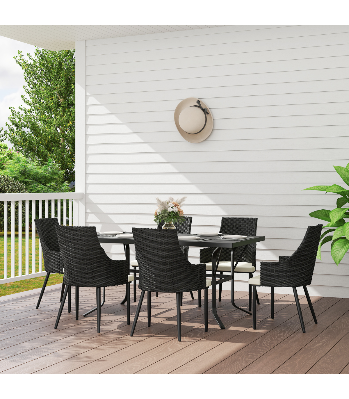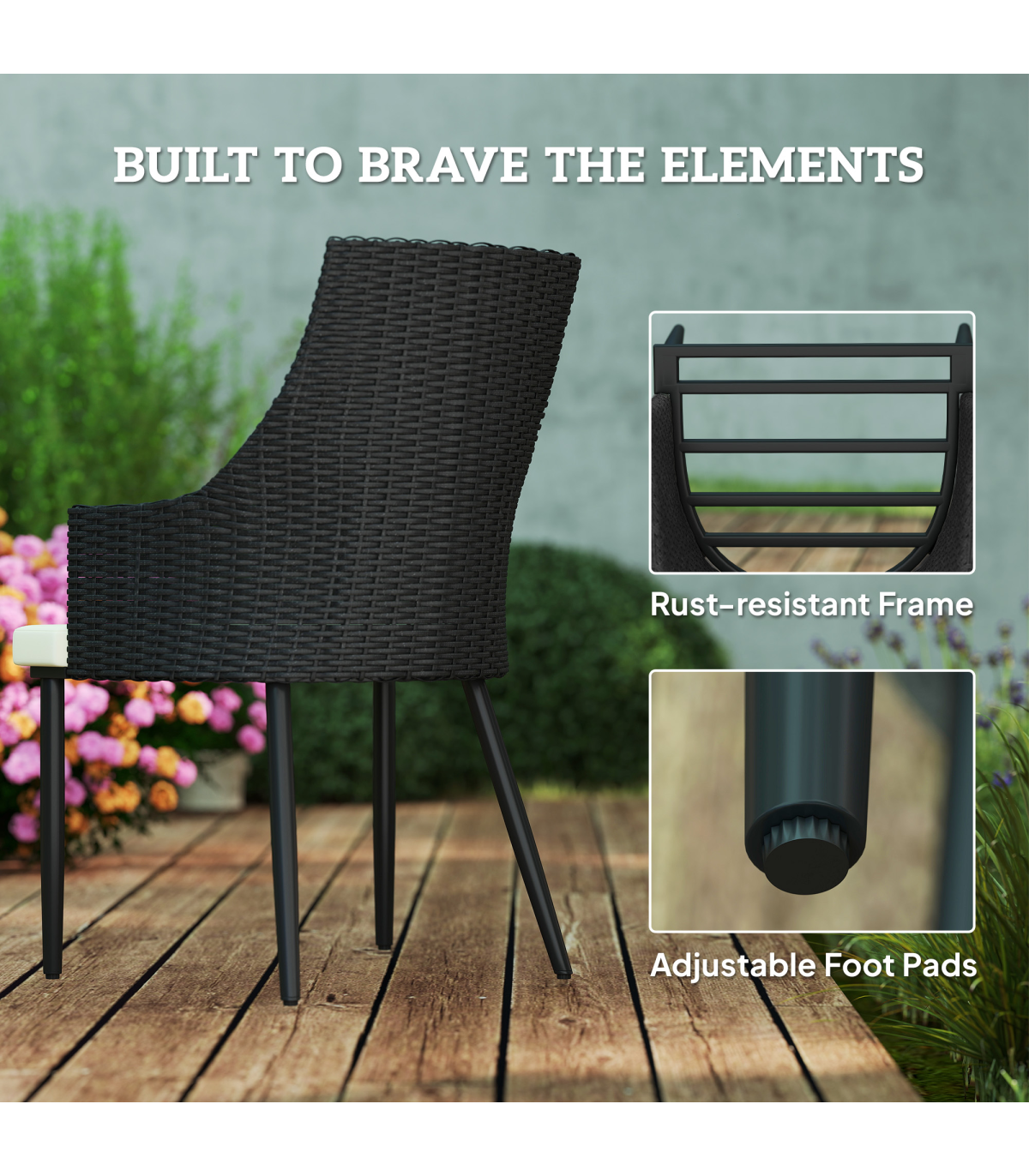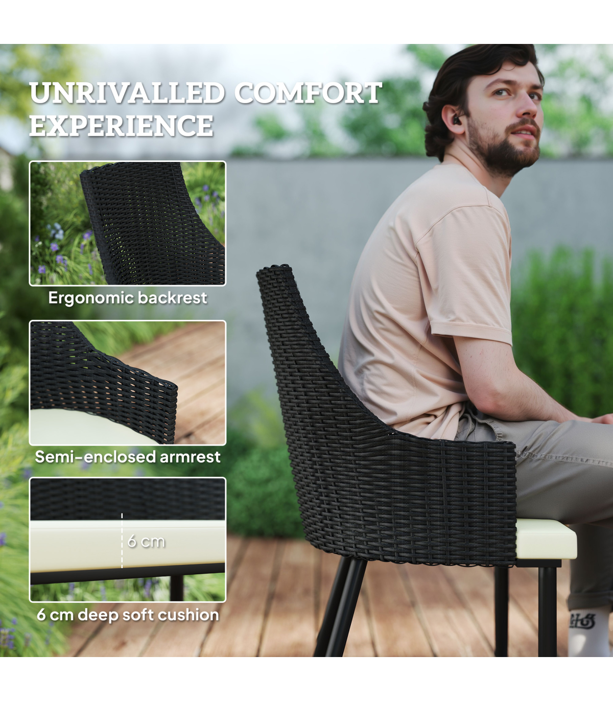Transform your garden into a haven of relaxation with the Outsunny rattan garden furniture. Crafted from all-weather PE rattan, it adds a touch of elegance and robust texture to your outdoor space. The ergonomically inclined backrest and integrated armrests ensure utmost comfort, complemented by soft, deep cushions. Suitable for family gatherings, this patio table and chairs set is a must-have for any patio.