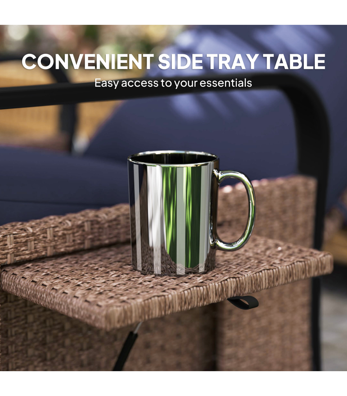 ● Aluminium and steel blend frame for a strong core, wrapped in double-strand plastic rattan
