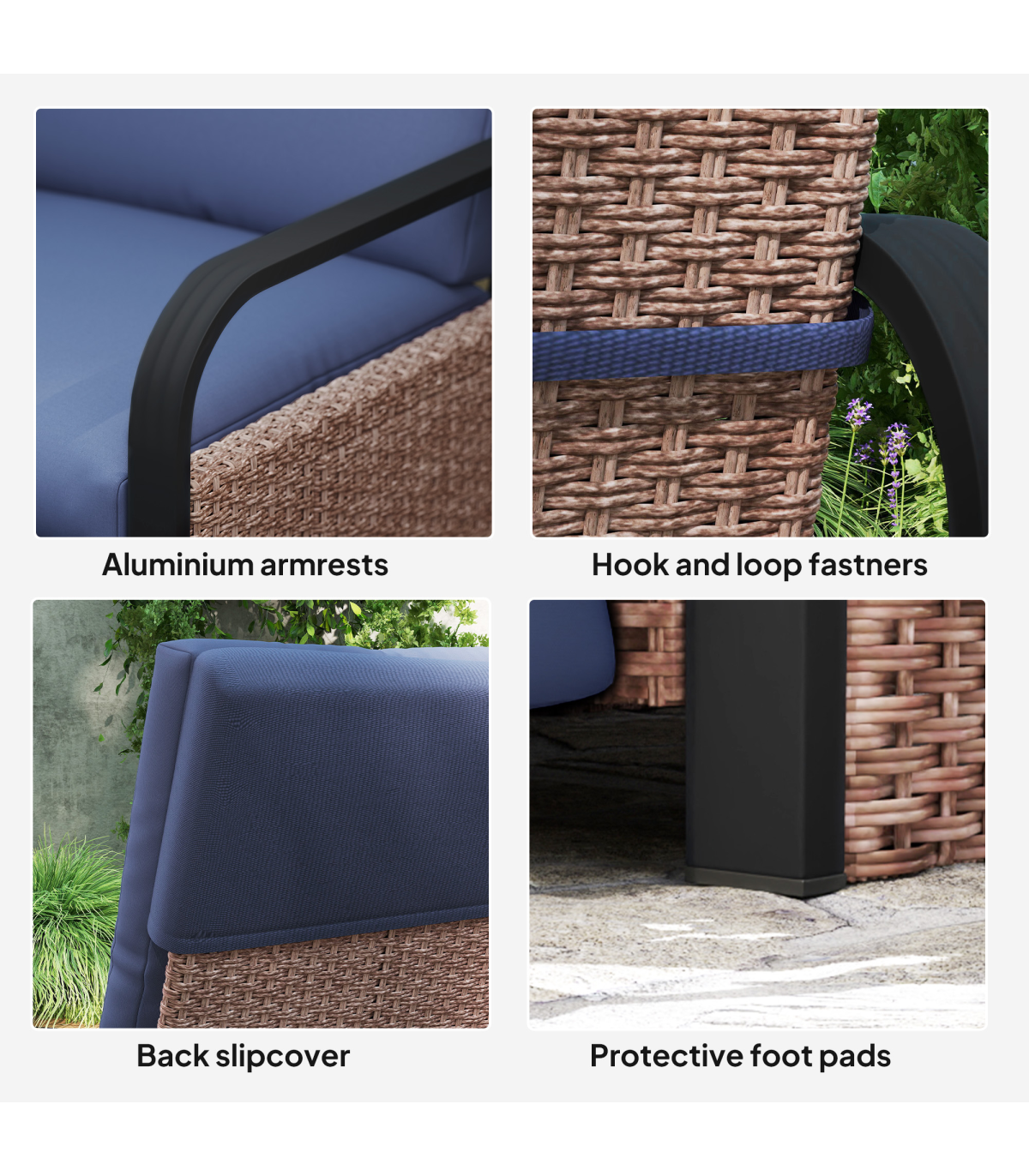 ● Material: Aluminium, Steel, PE Rattan, Fibre Cloth (100% Polyester), Sponge, Tiled Cotton