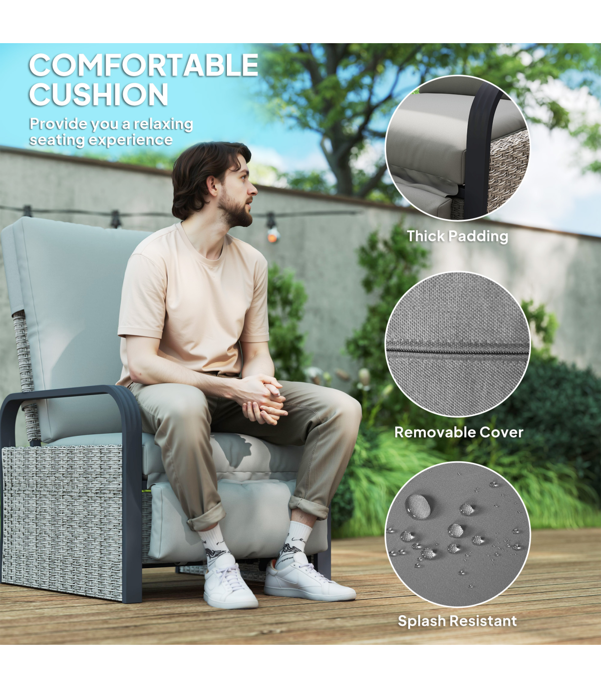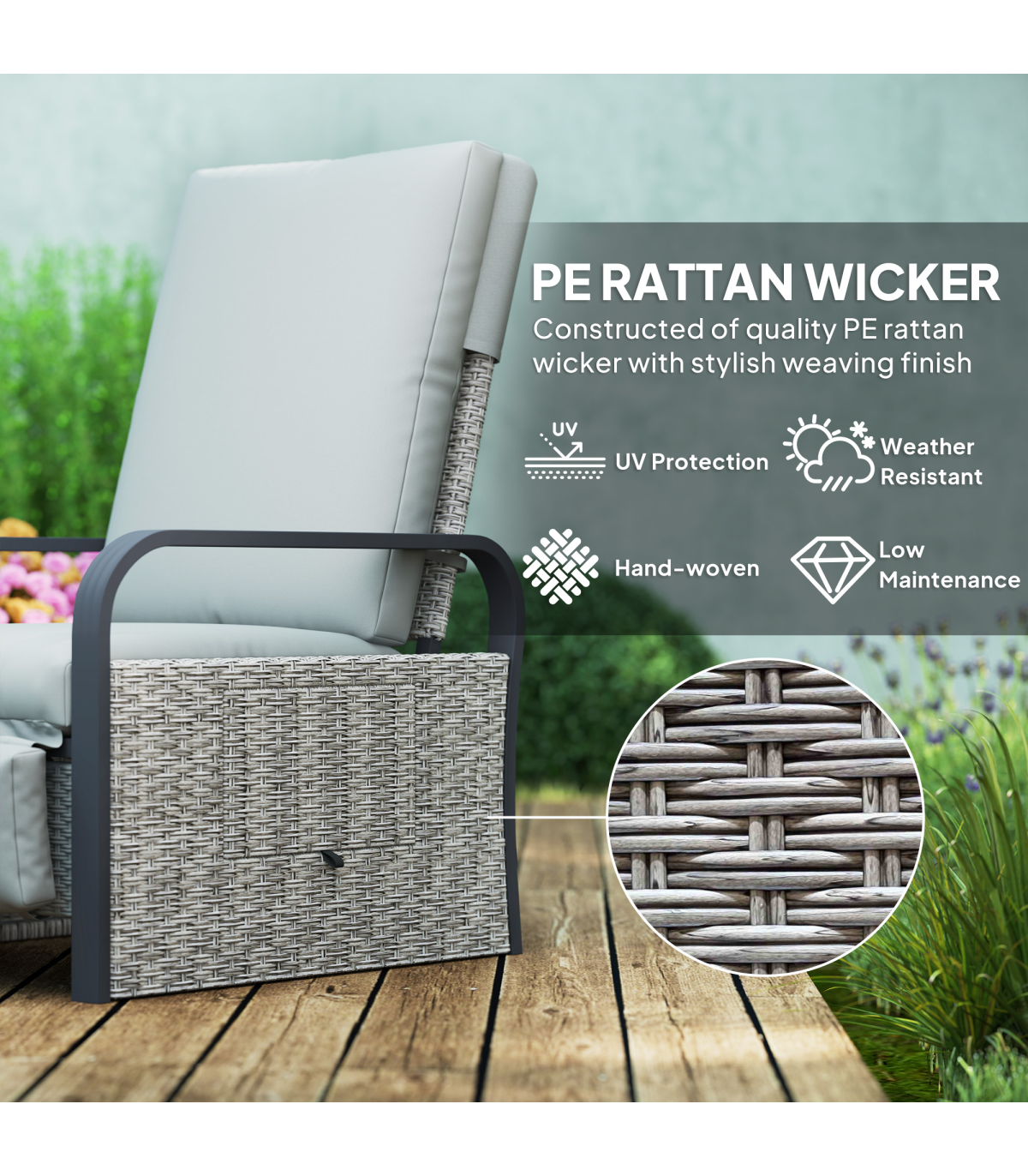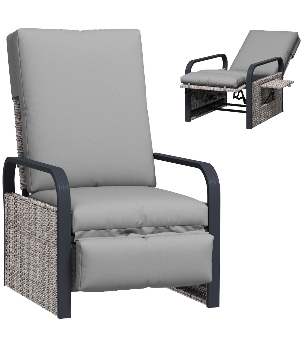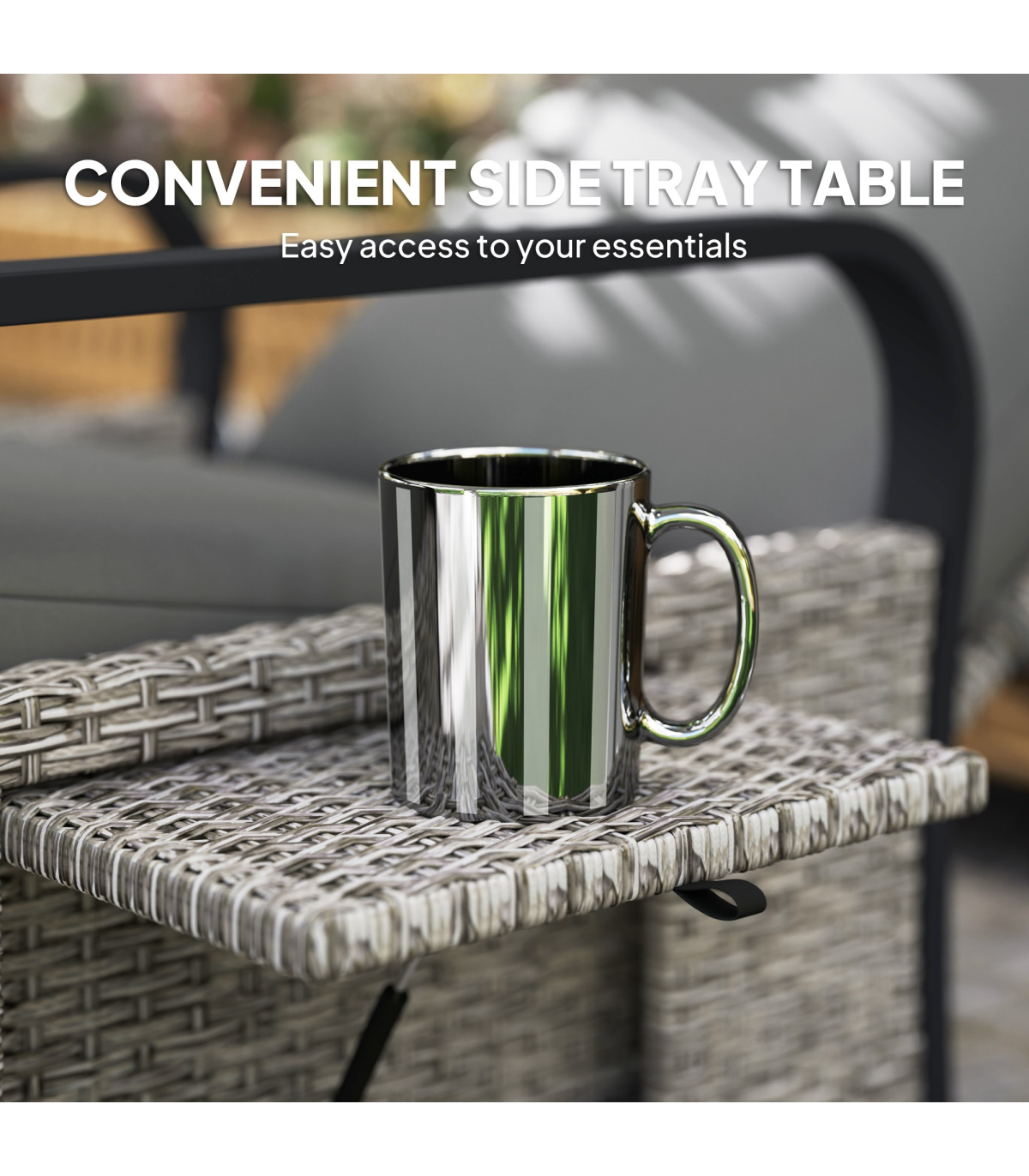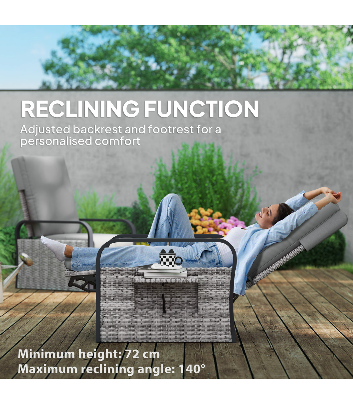 Outsunny Rattan Garden Recliner Chair Sun Lounger w/ Side Tray, Grey