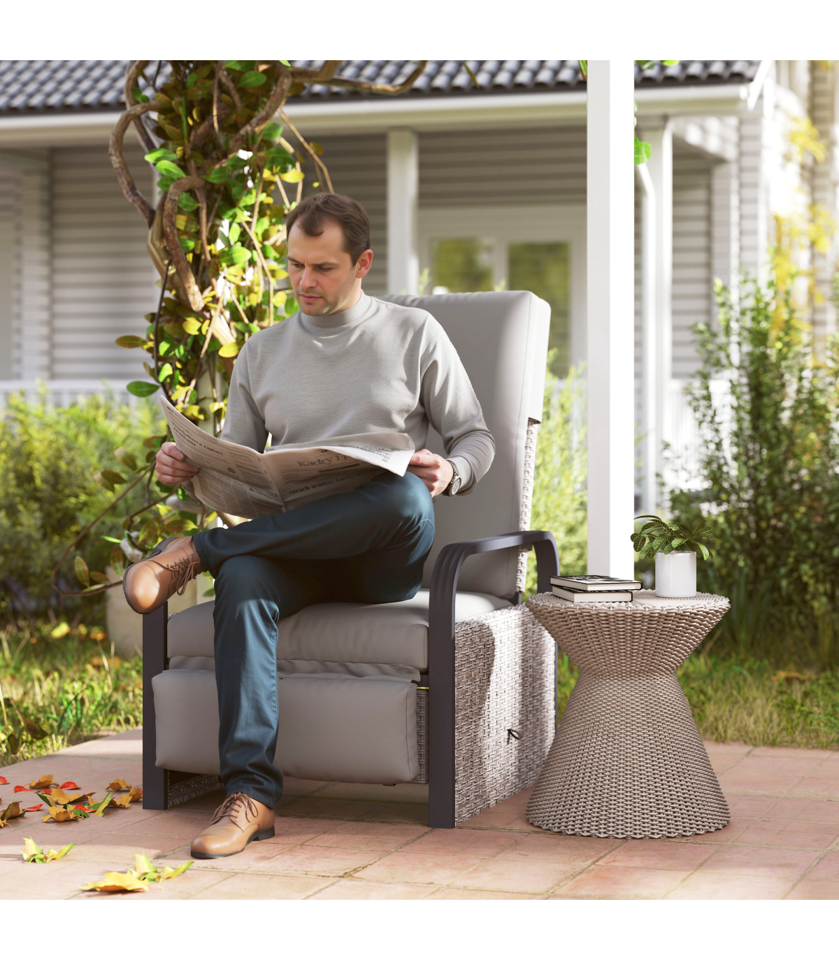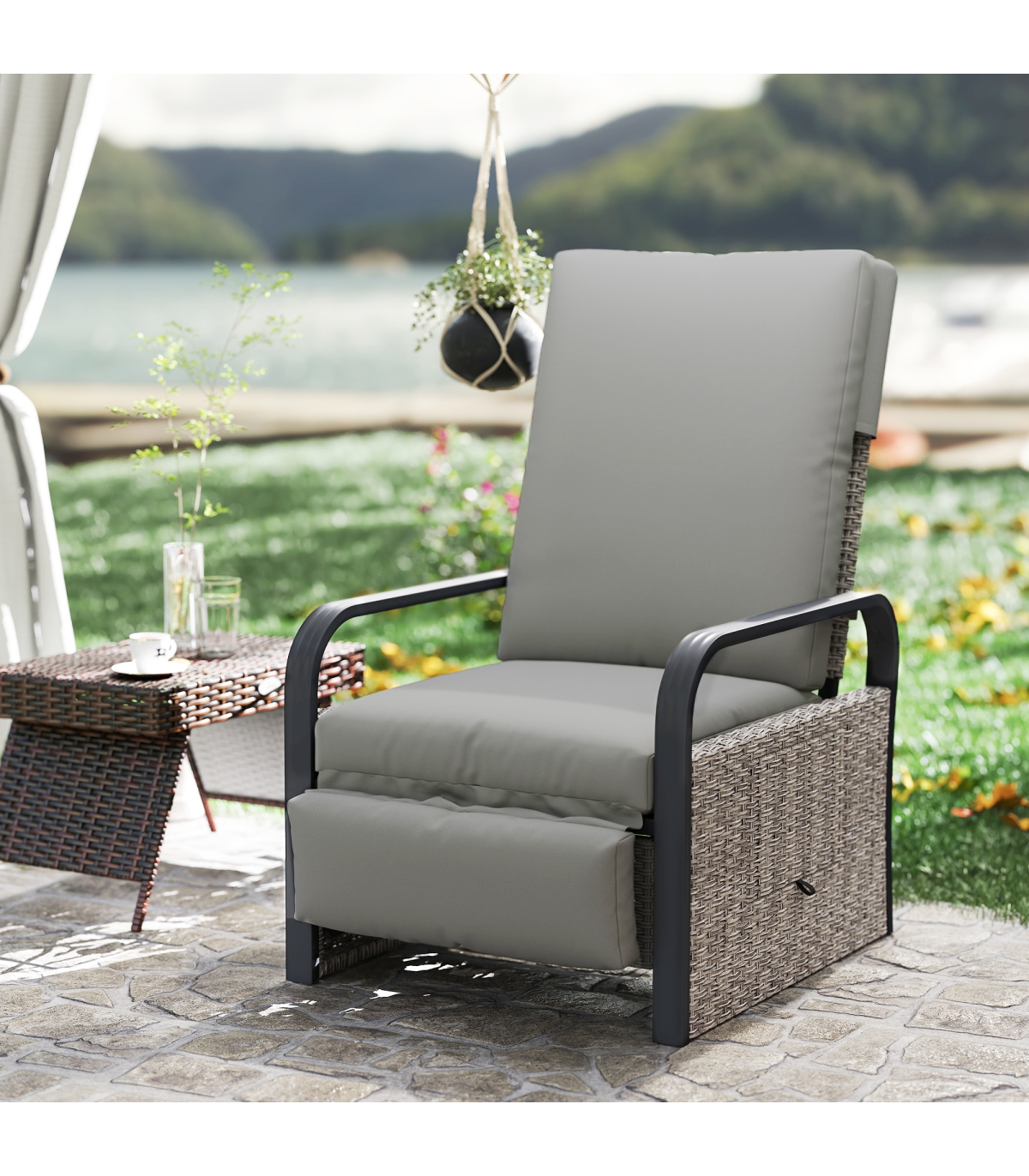 Forever on-trend rattan style, at an angle you want to relax - with this Outsunny rattan recliner chair. The back adjusts to a 140° angle to lie back to a position you want