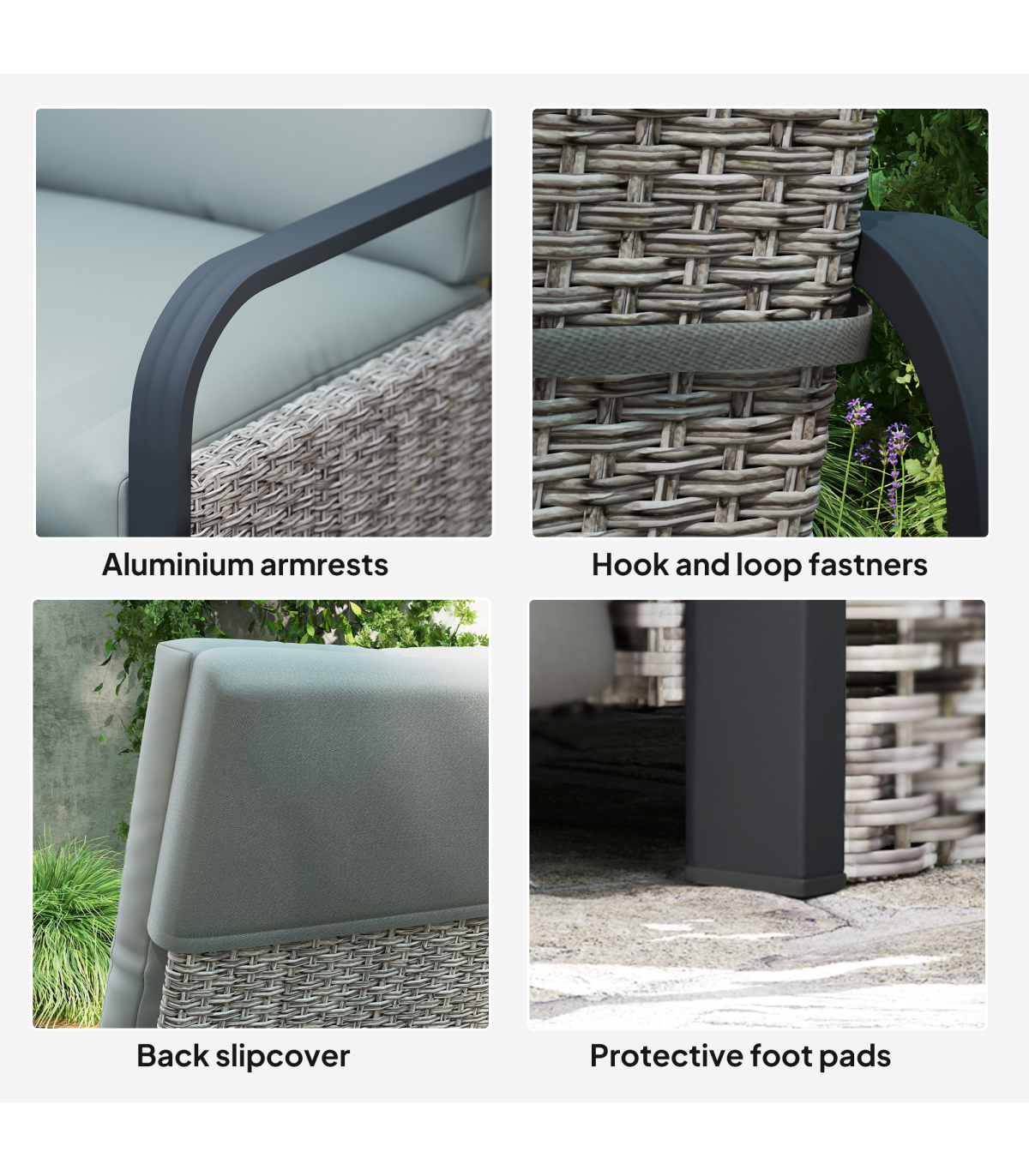 ● Material: Aluminium, Steel, PE Rattan, Fibre Cloth (100% Polyester), Sponge, Tiled Cotton
