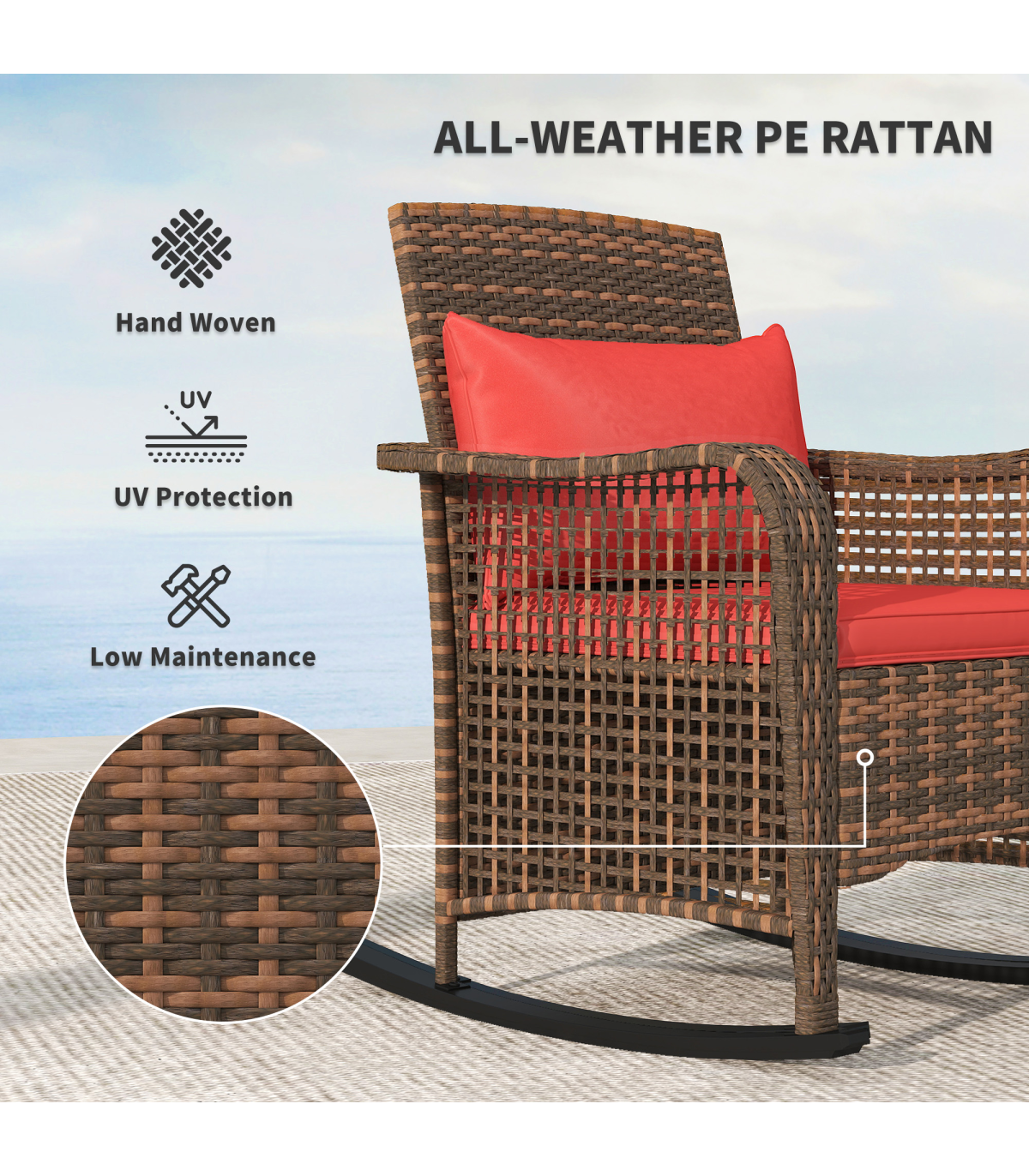 ● Easy-to-clean PE wicker seat and backrest resist UV, light water
