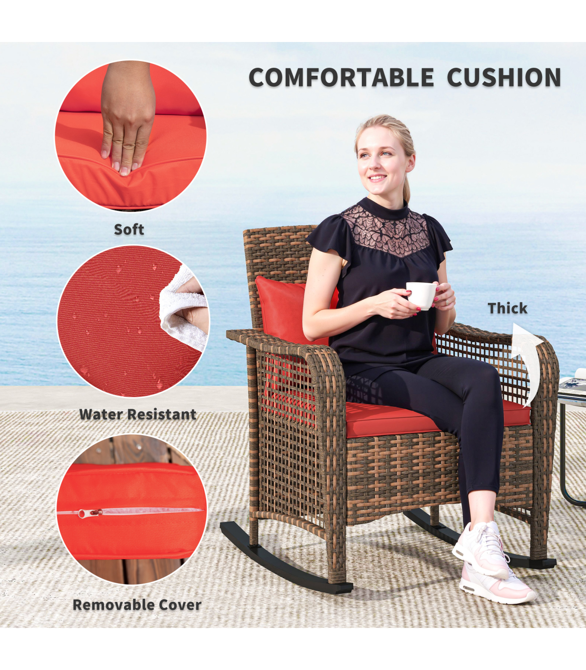 ● Thick PP foam cushions, splash-resistant for durability