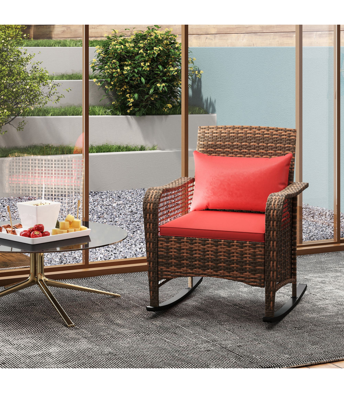 ● Materials: Steel, PE Rattan, Polyester, Cotton