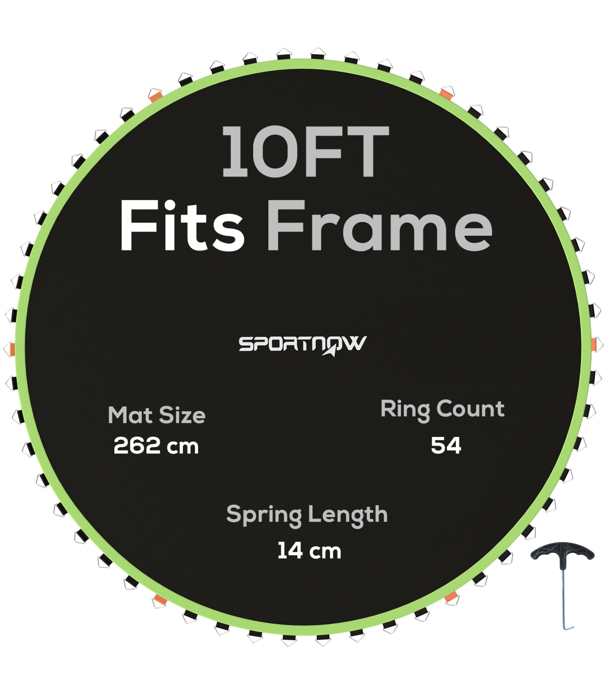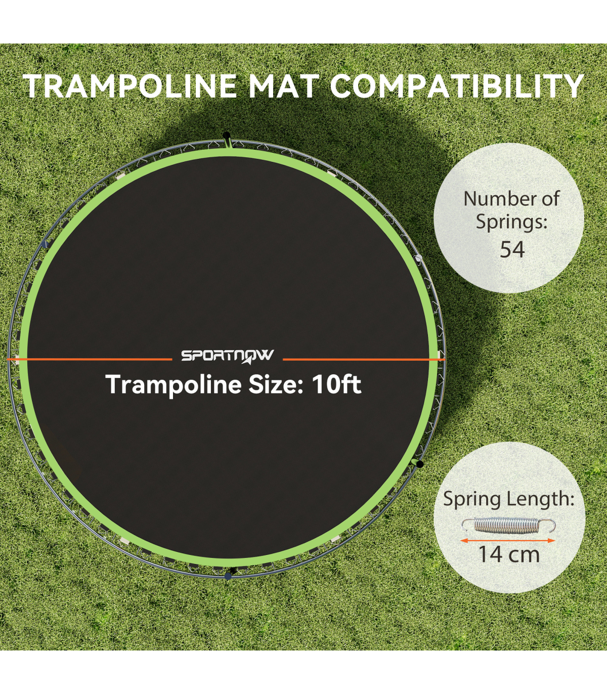 ● With 42 V-rings included, this mat fits a 8ft round trampoline using 14cm springs