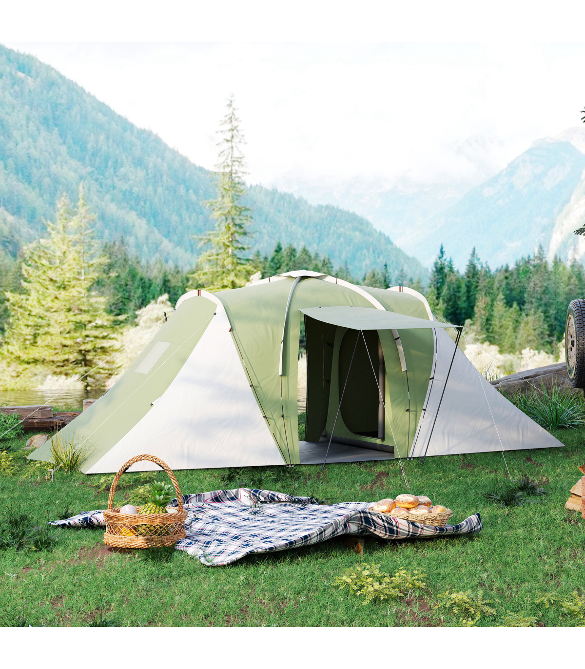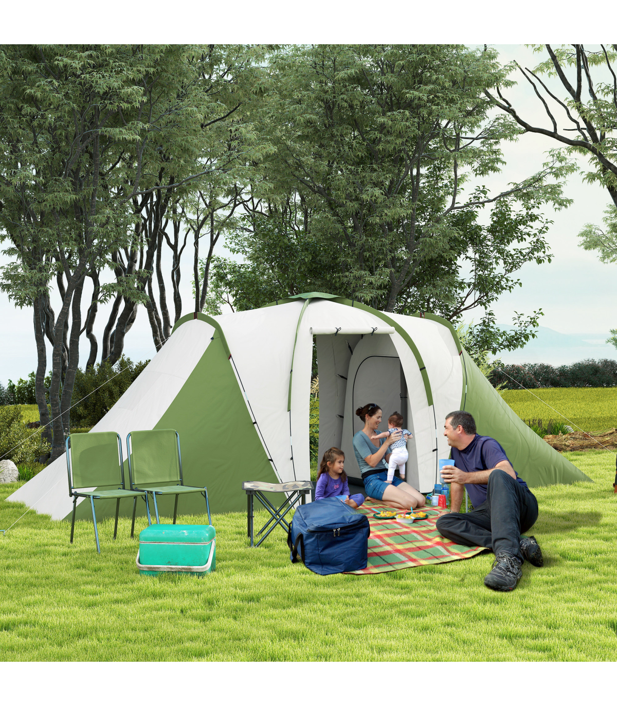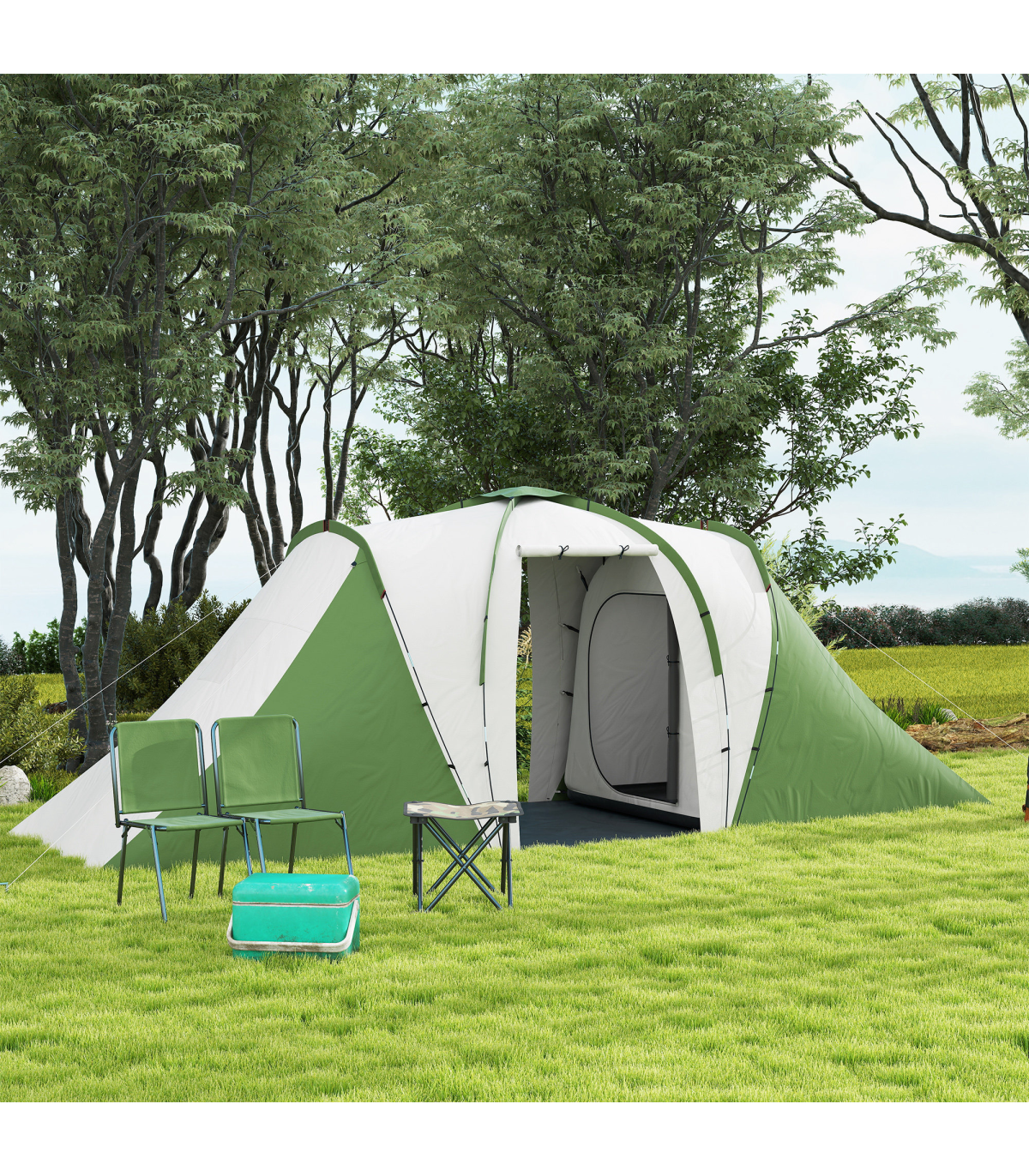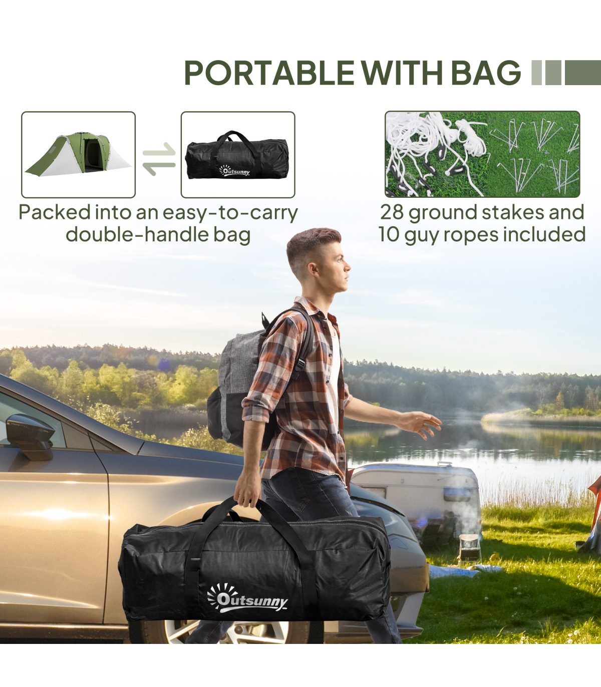 ● 28 ground stakes, 10 guy ropes and carry bag included
