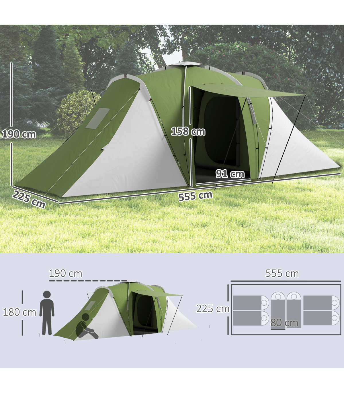 ● Overall Dimensions: 555L x 225W x 190H cm