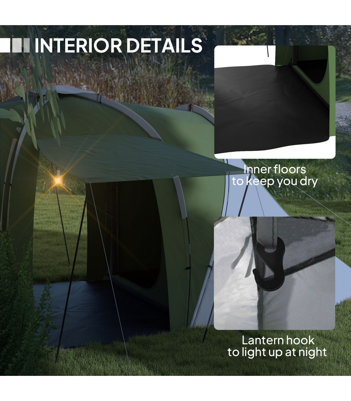 ● Lantern hook to light up at night - keep naked flames away