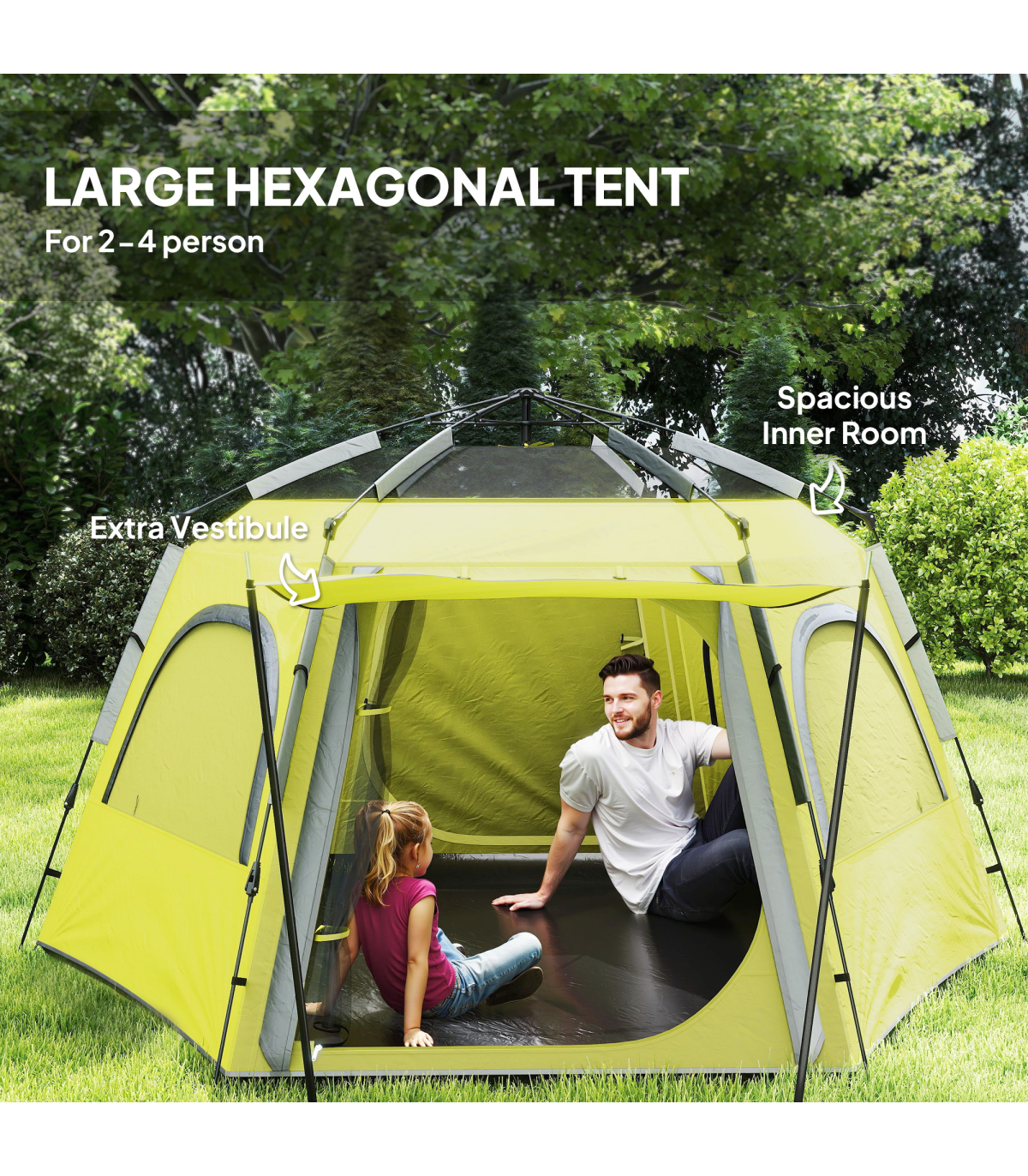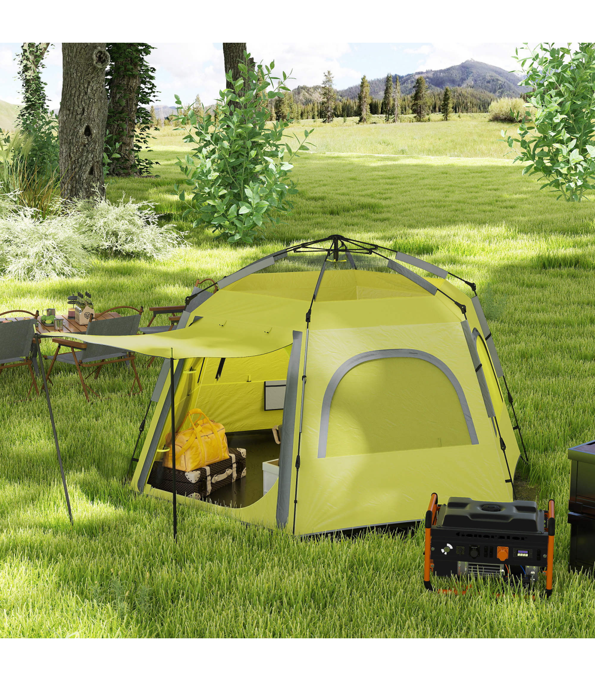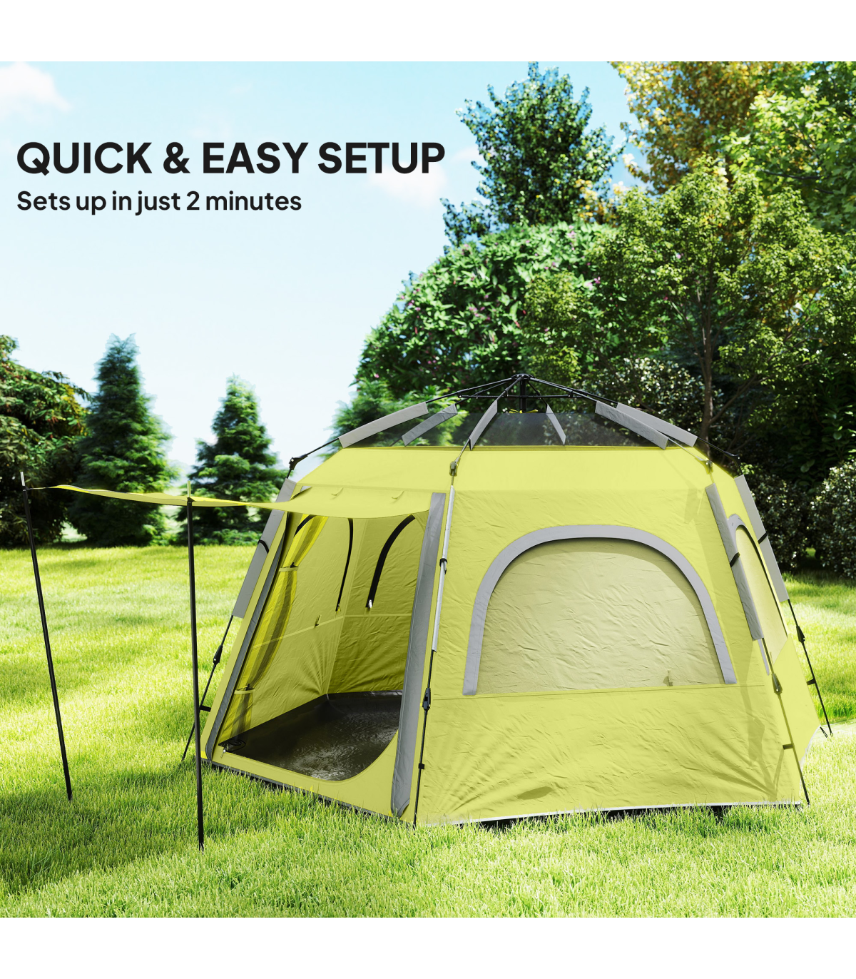 Outsunny Instant Camping Tent, 4 Person Easy Setup Dome Tent, Yellow Green
