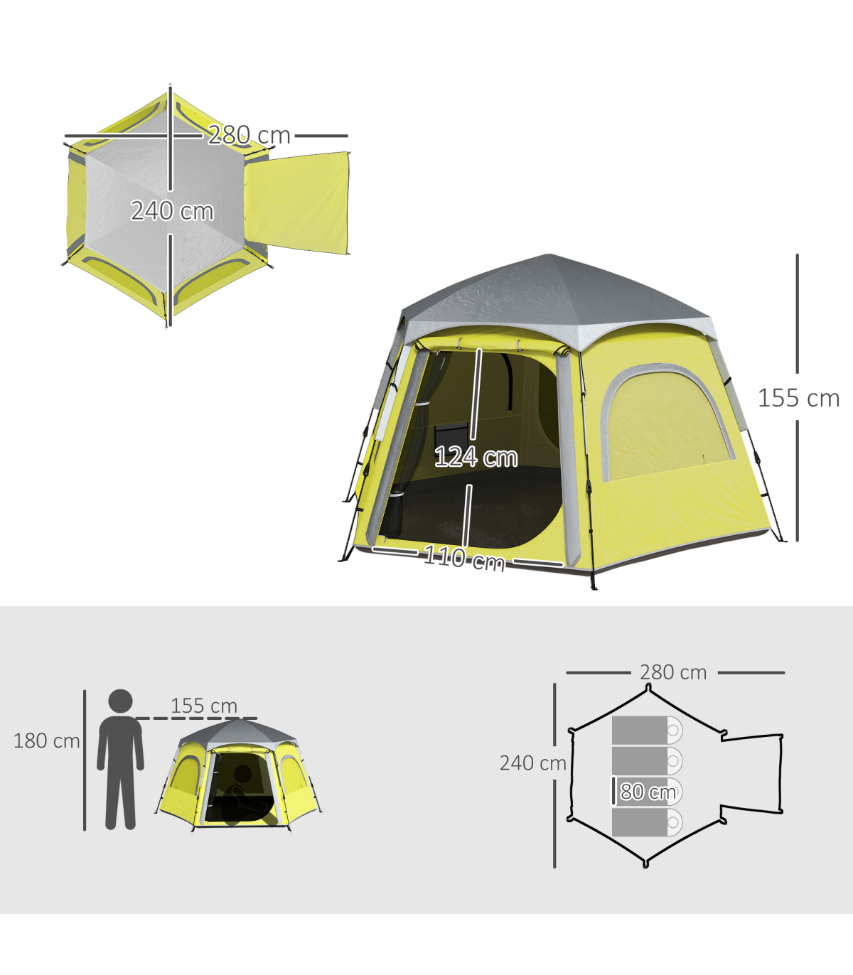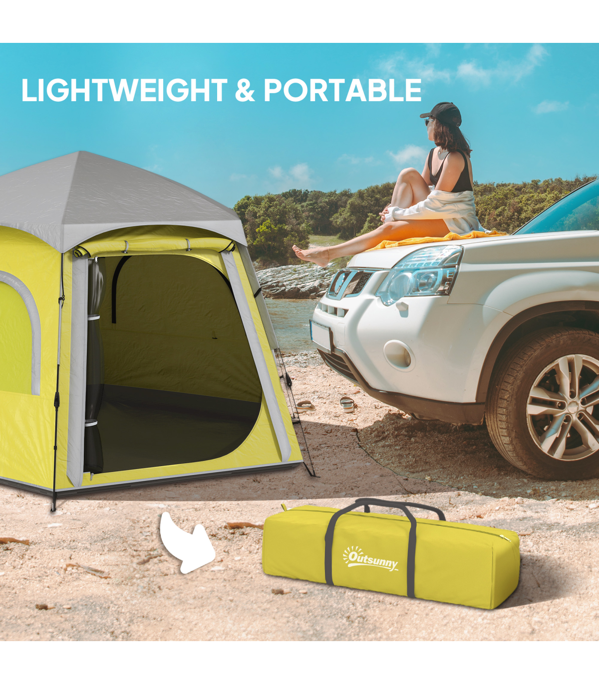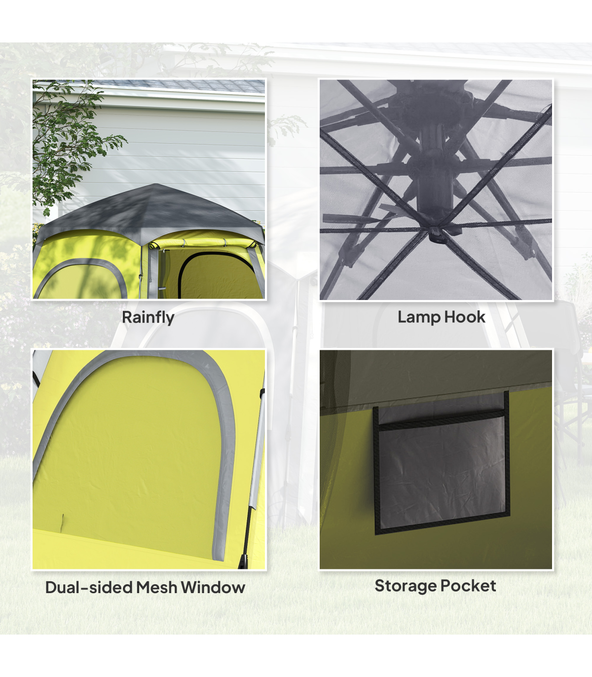 Outsunny Instant Camping Tent, 4 Person Easy Setup Dome Tent, Yellow Green