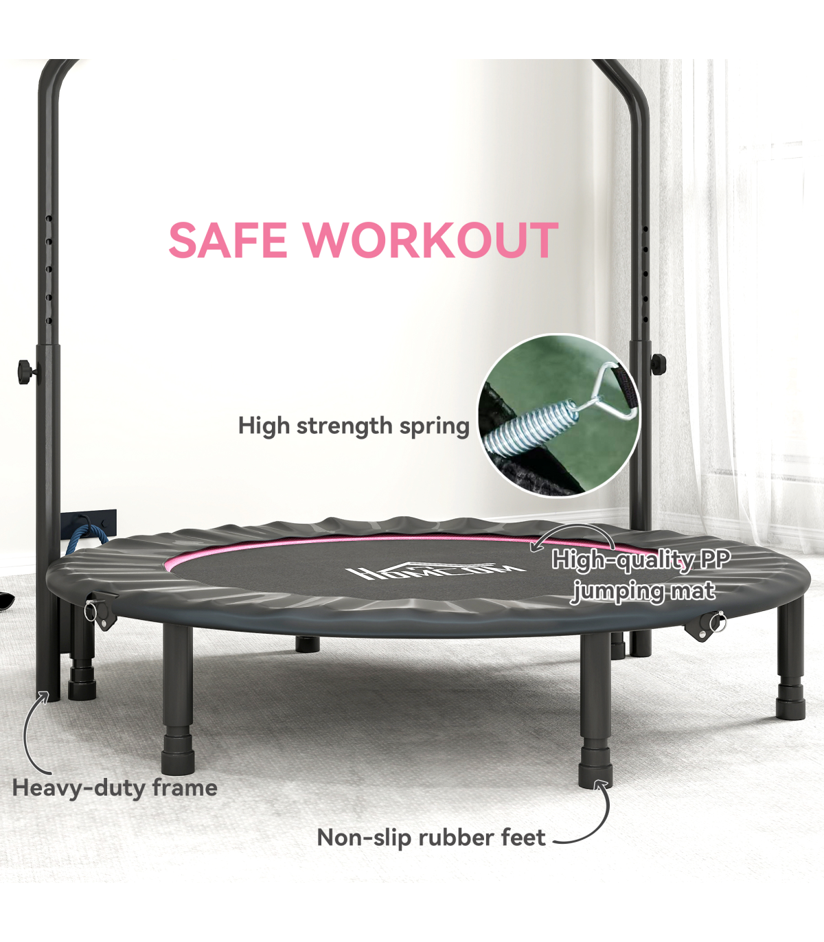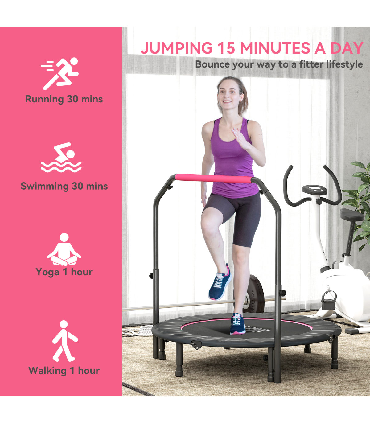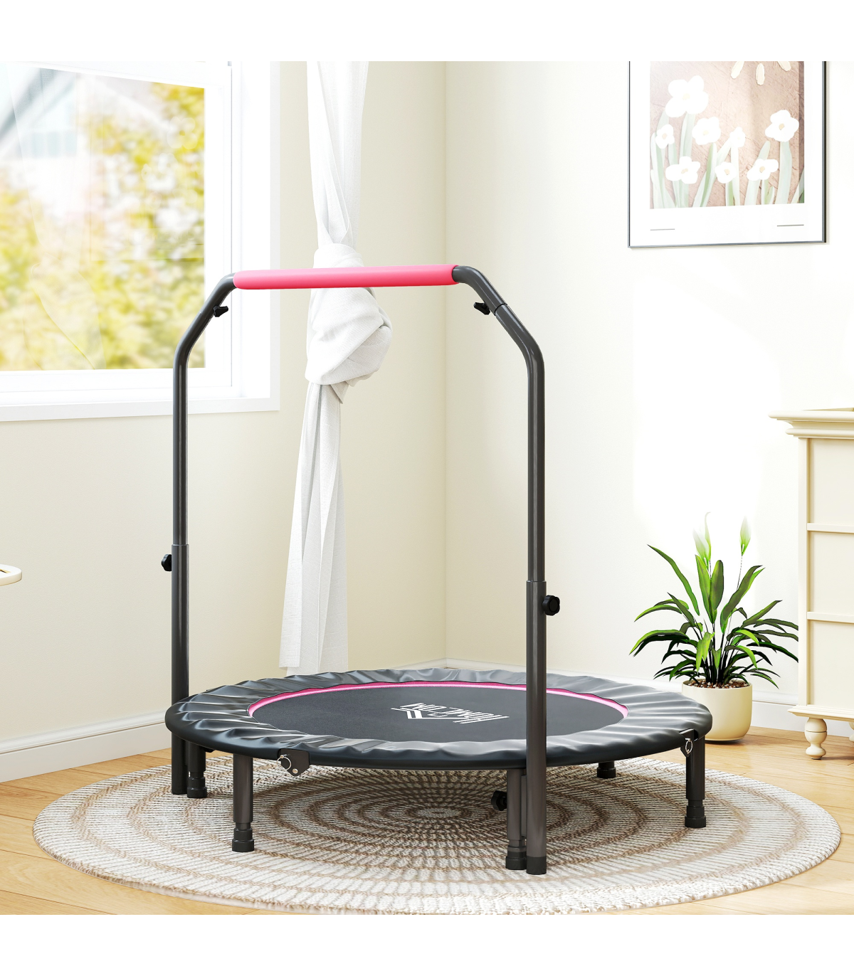 HOMCOM 48" Foldable Mini Fitness Trampoline w/ Foam Handle, Pink