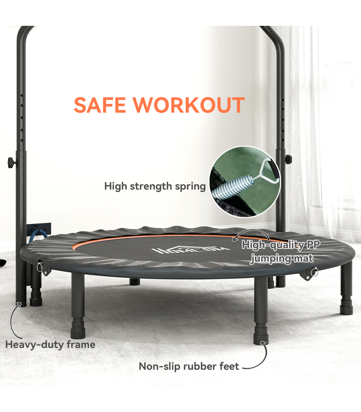● Four-level adjustable handlebar, providing flexibility when bouncing
