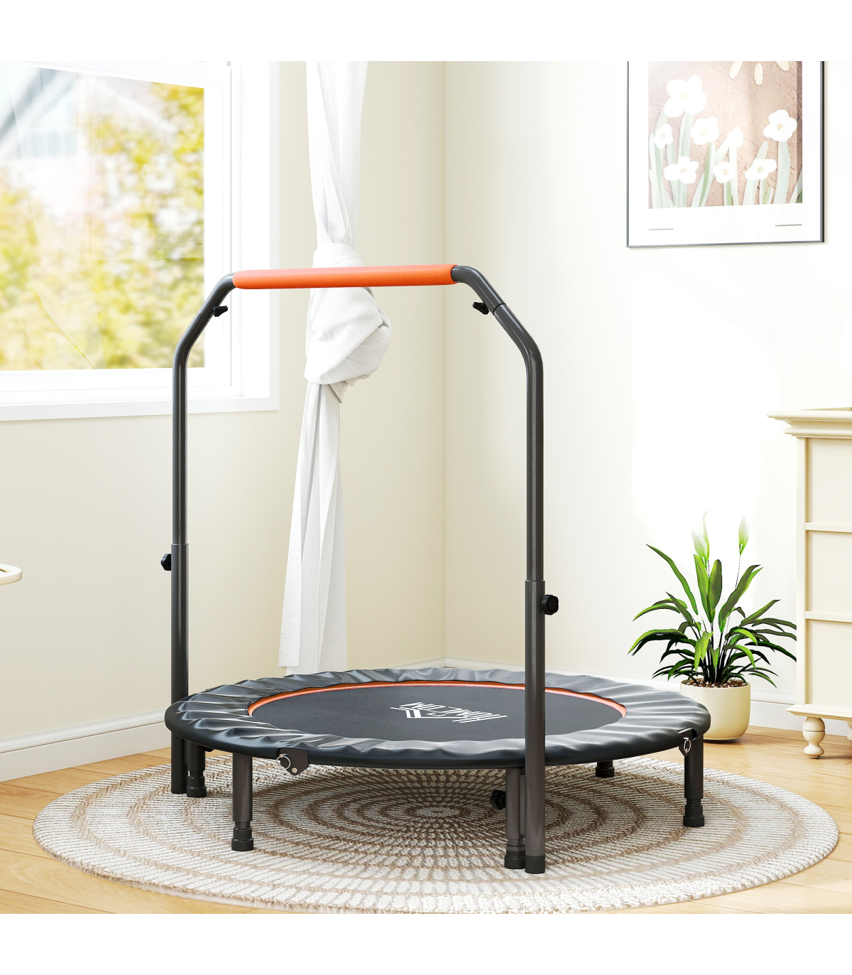 HOMCOM 48" Foldable Mini Fitness Trampoline w/ Foam Handle, Orange