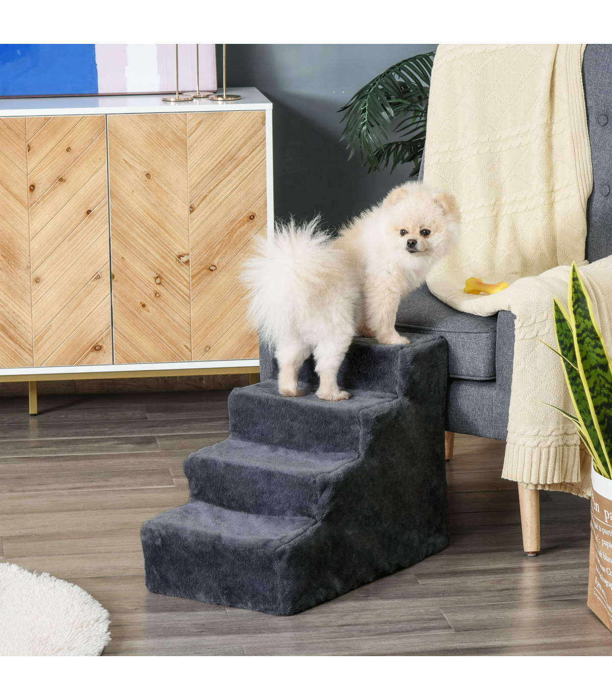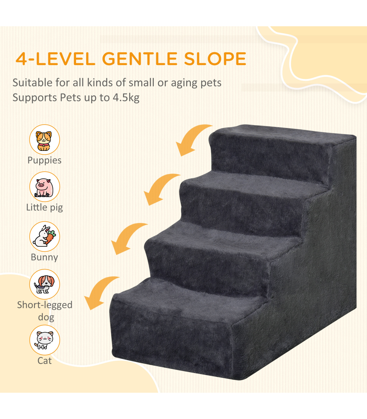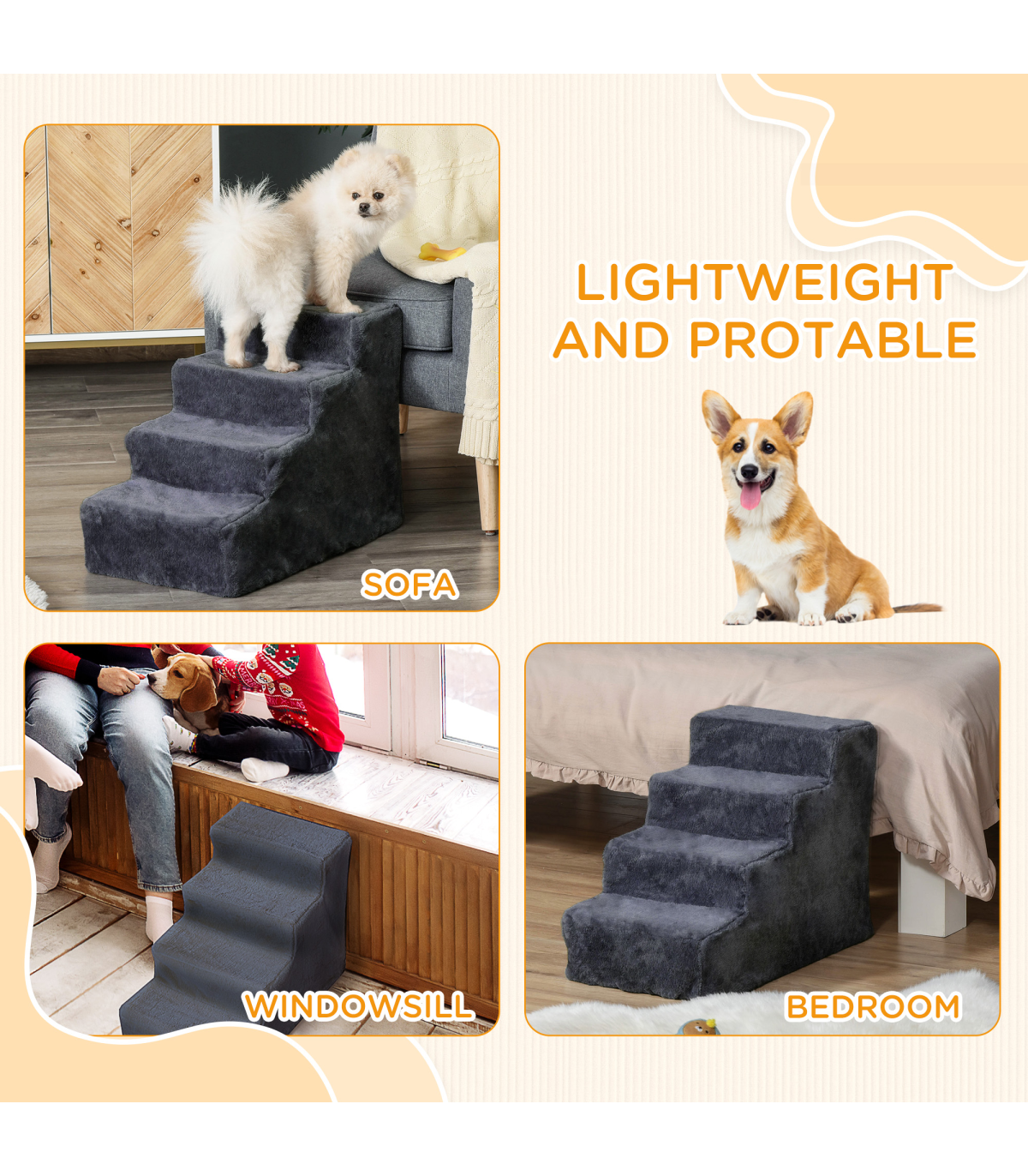 ● With four steps, it is solid and stable, supporting pets who are older or have mobility issues
