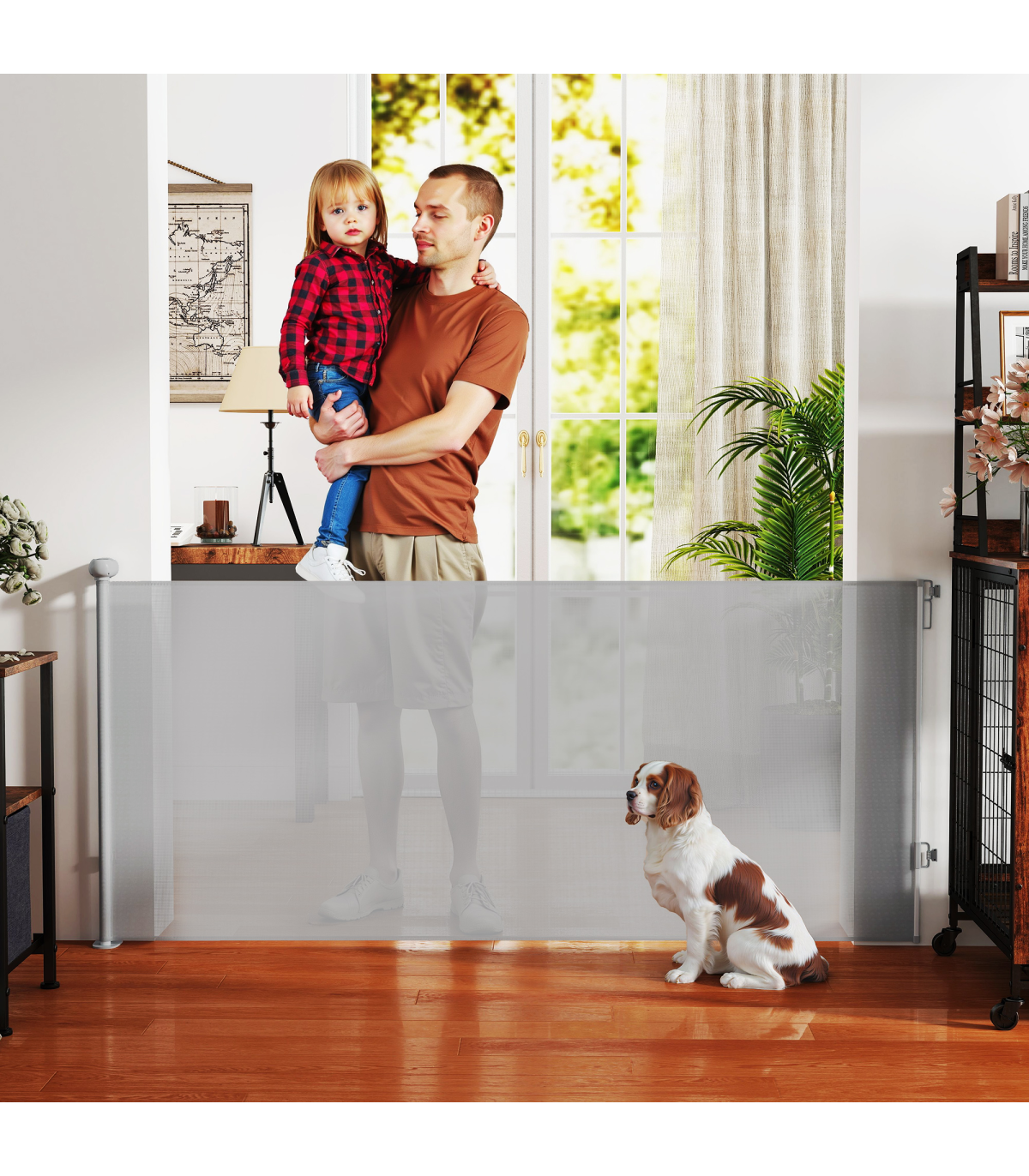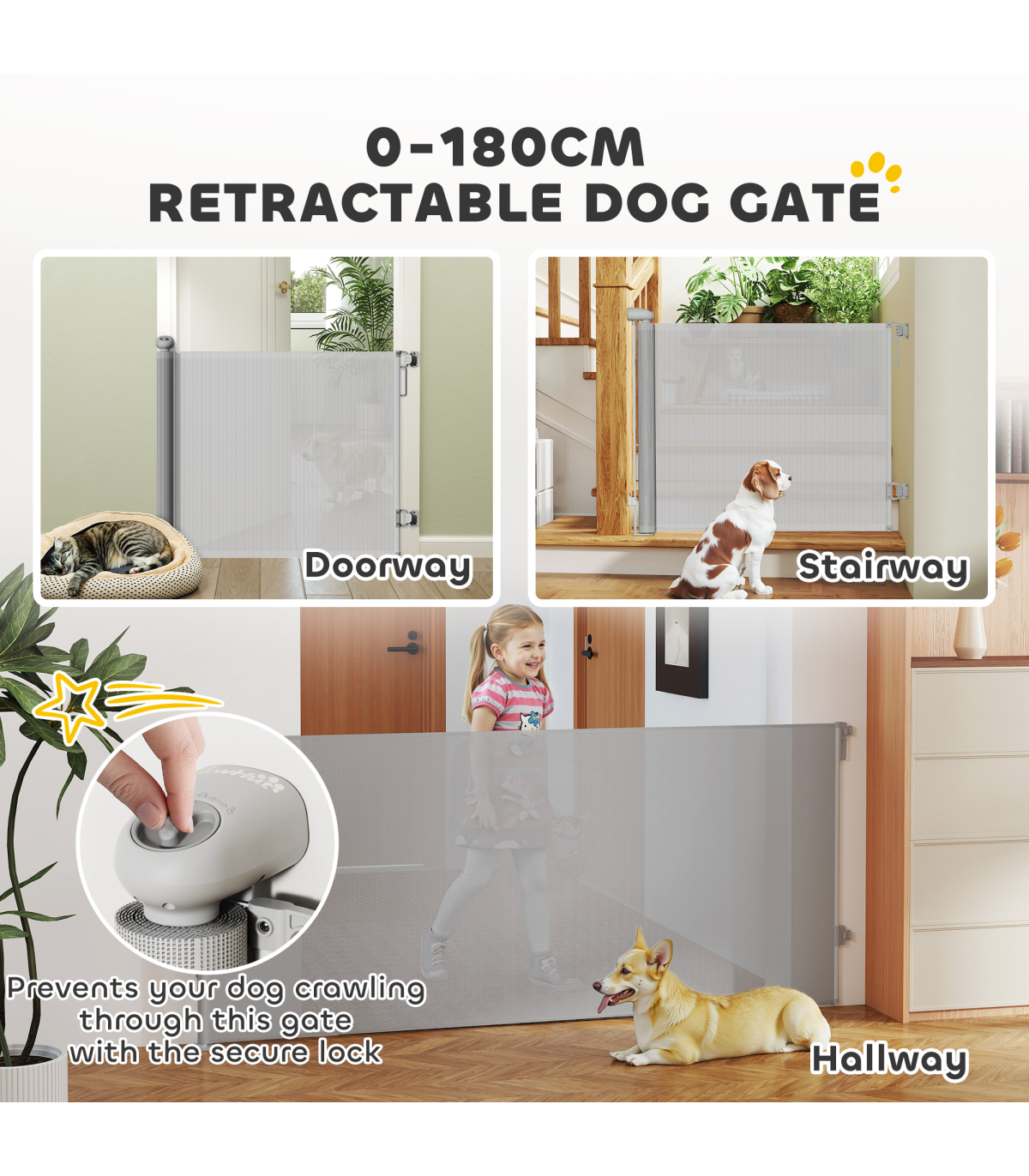 ● Retractable dog gate adjusts to fit doorways up to 140 cm