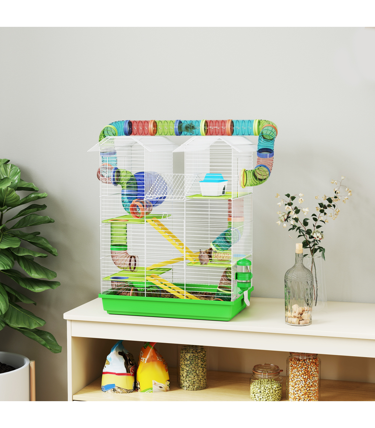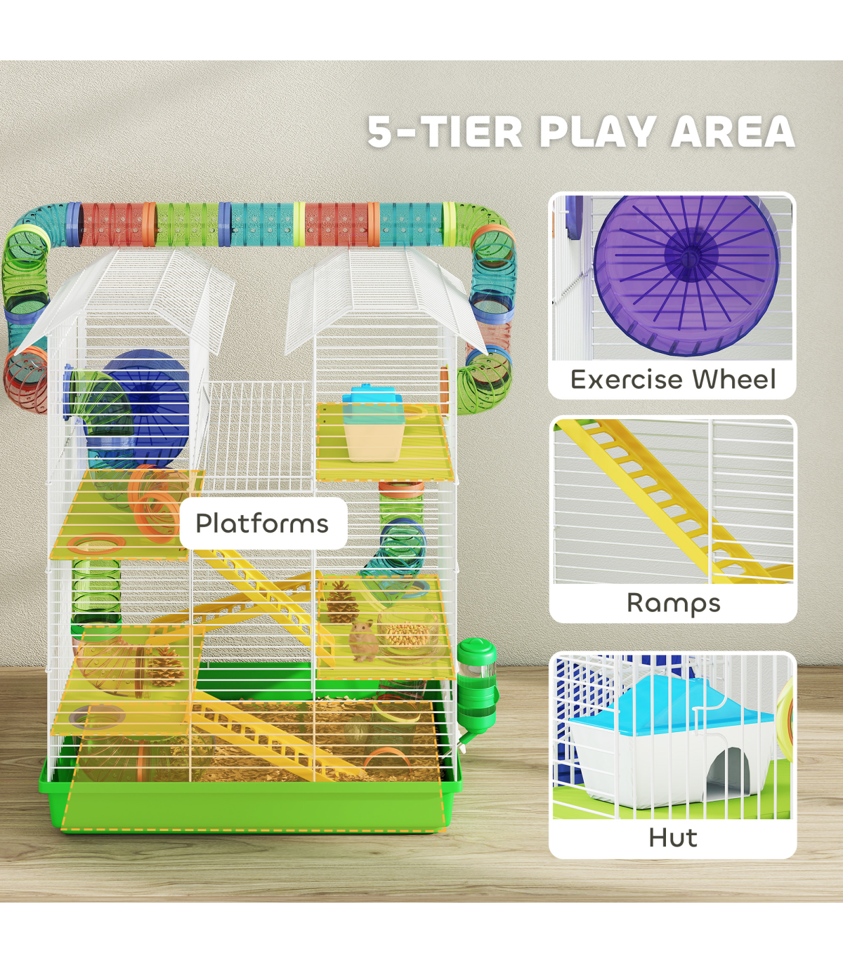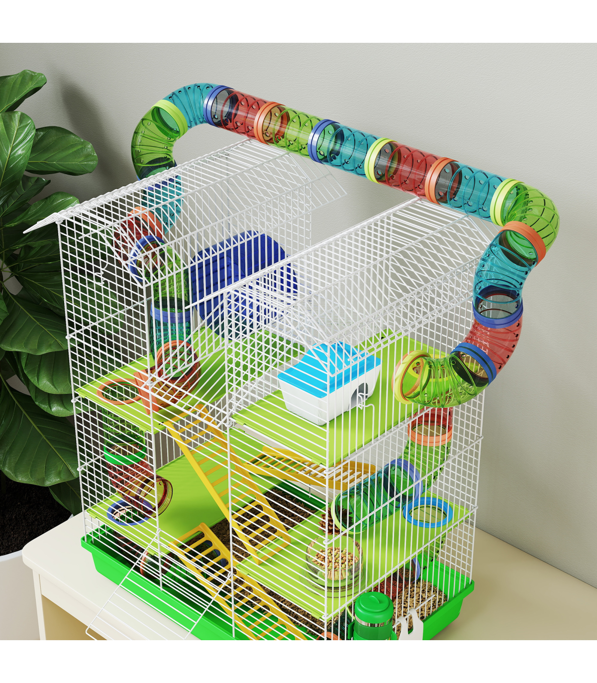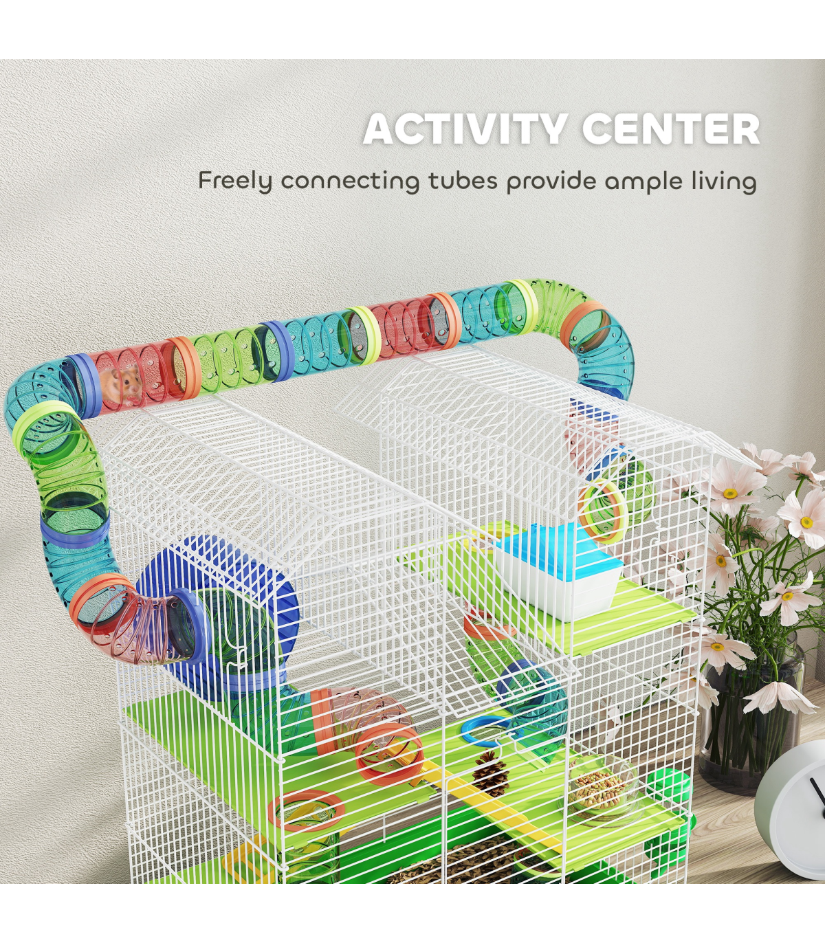 ● Play tubing system promotes activity and allows your small pet to move freely