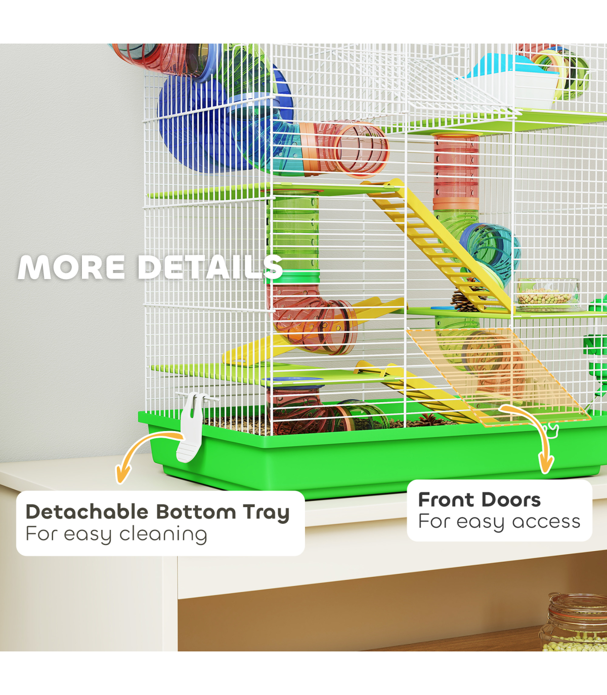 ● The front door allows you access to your hamster easily