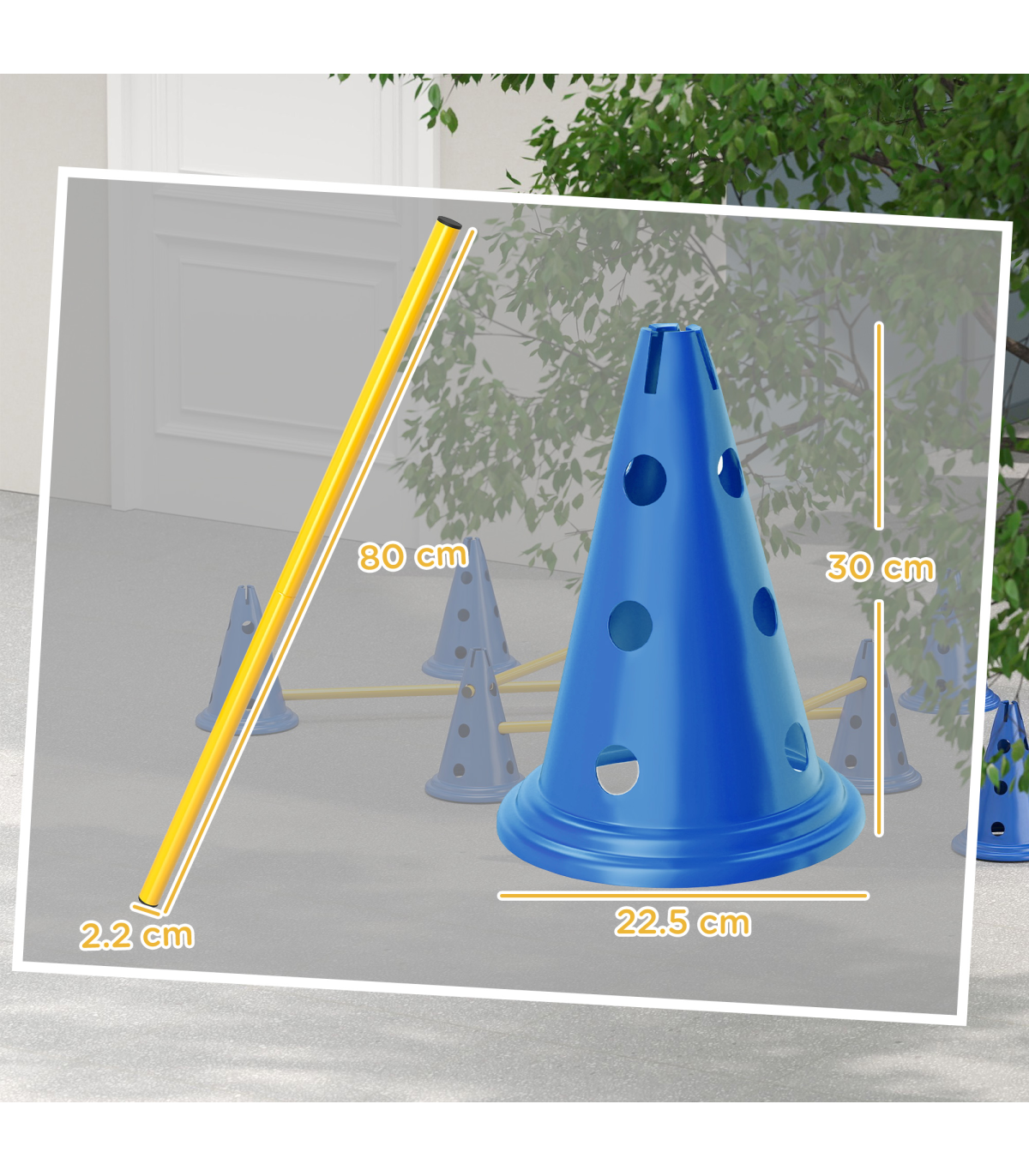 ? Three-piece set includes six cones, six poles and a storage bag