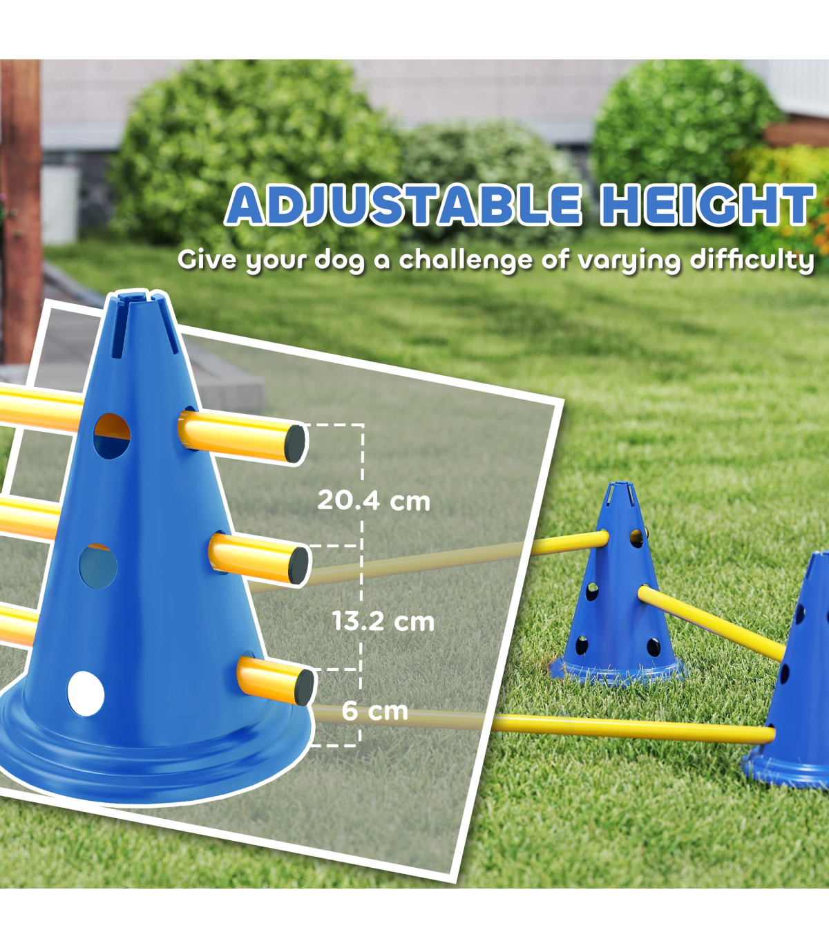Train your dog with the PawHut pet agility set! Featuring three adjustable dog jumps to suit any size or skill level, this dog training equipment enhances concentration, fitness and agility. Made from safe, lightweight ABS, it's simple to assemble and disassemble and comes with a bag for easy transport. Whether in your garden or at the local park, you'll not only train your dog but also strengthen your bond!