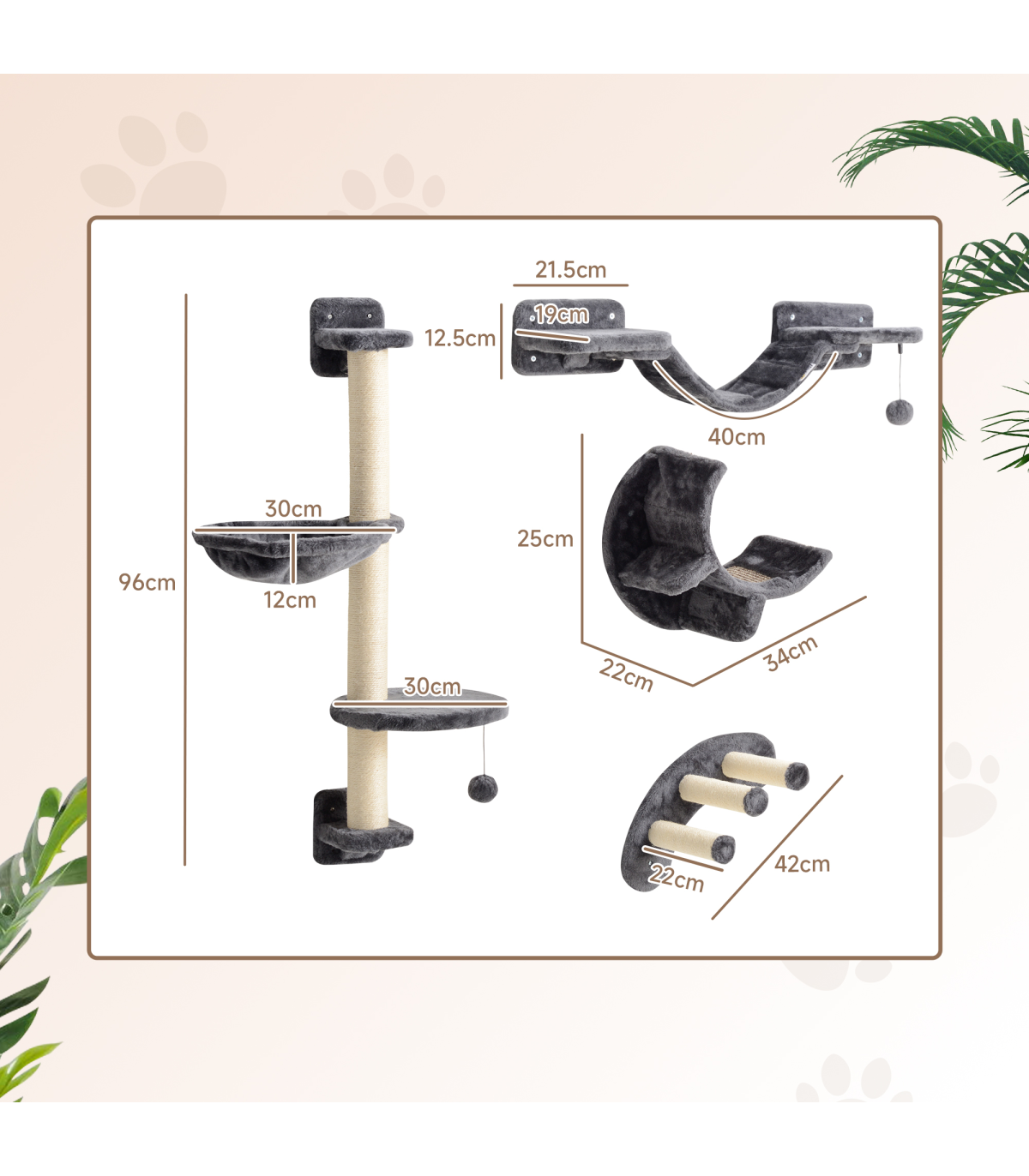? Platform with hammock: 96H x 30L x 30Wcm