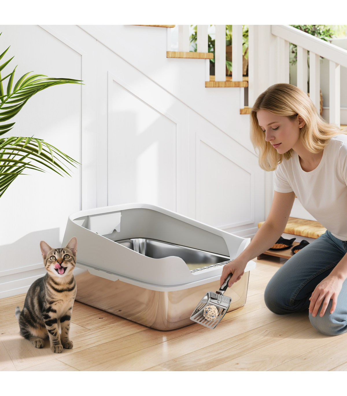 ? Non-stick stainless steel cat litter tray for effortless daily cleaning
