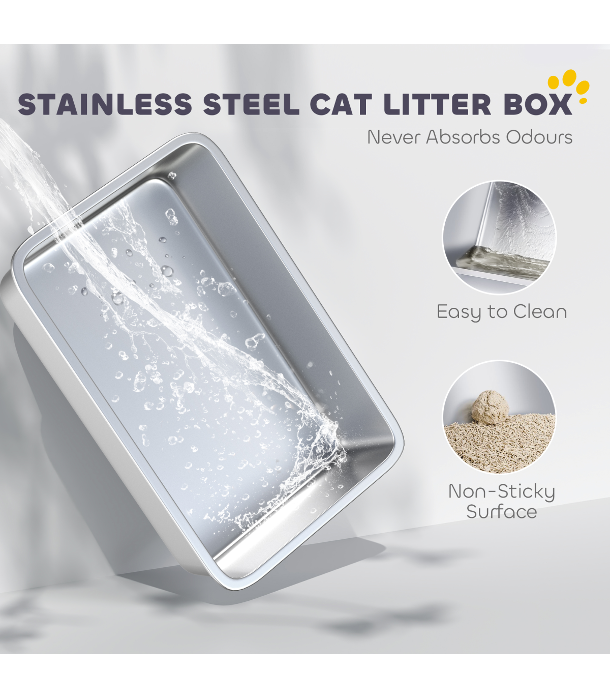 ? Non-stick stainless steel cat litter tray for effortless daily cleaning