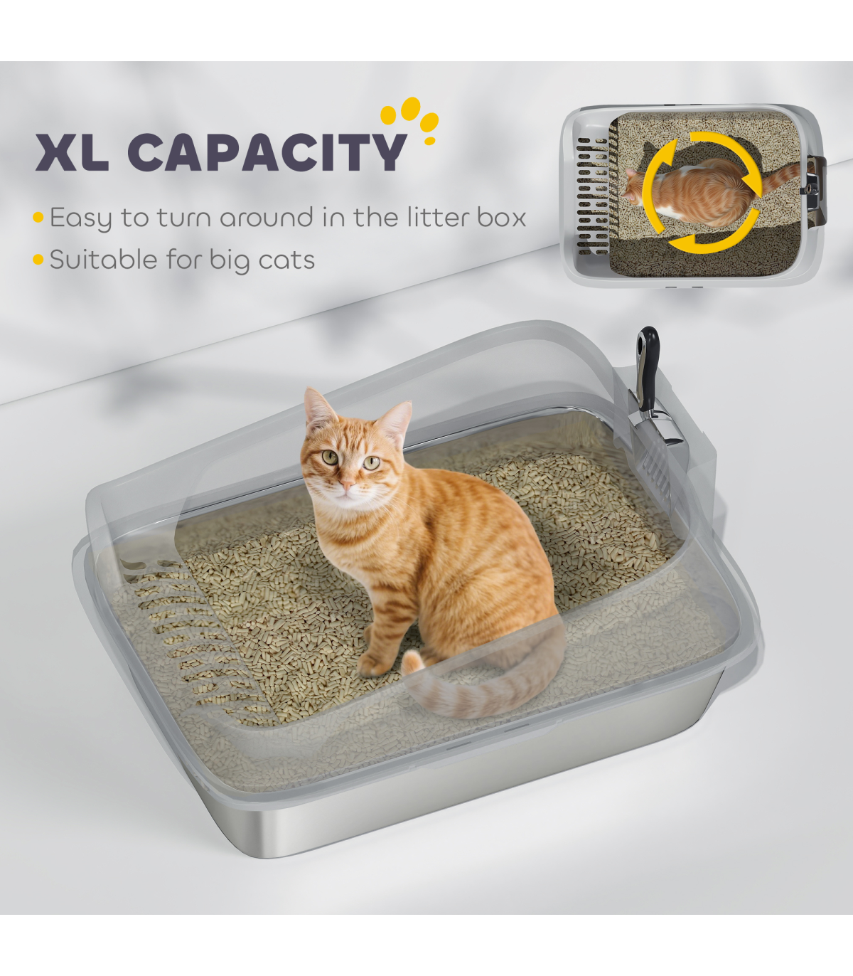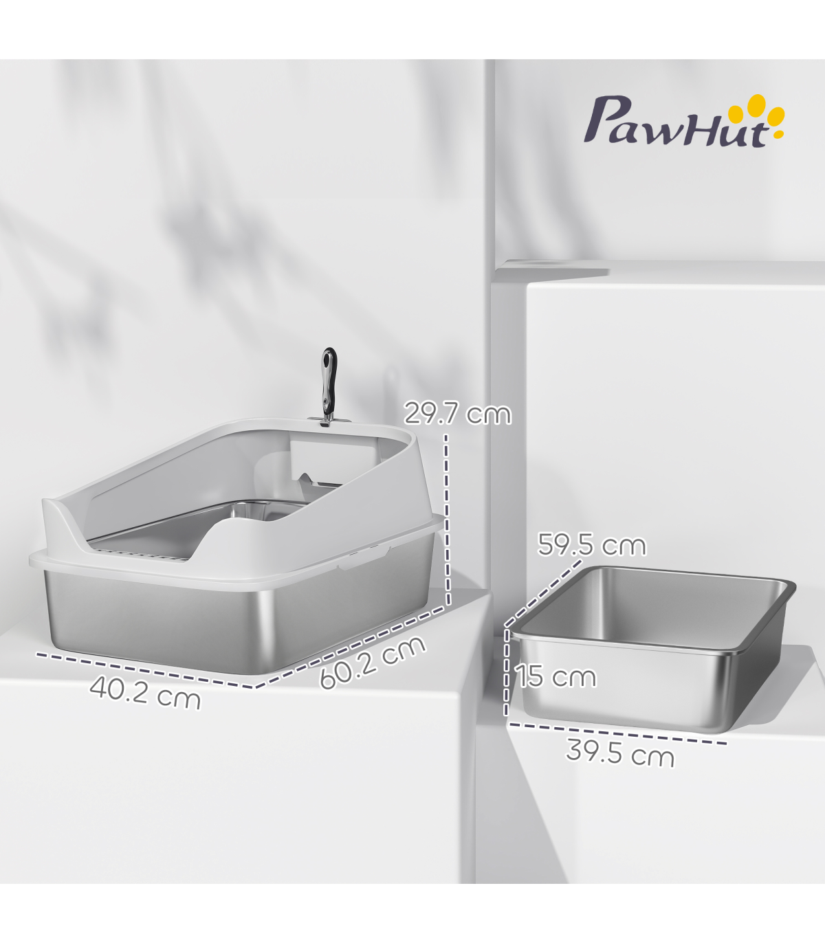 PawHut XL Stainless Steel Cat Litter Box with High Sides, 60 x 40 x 30 cm