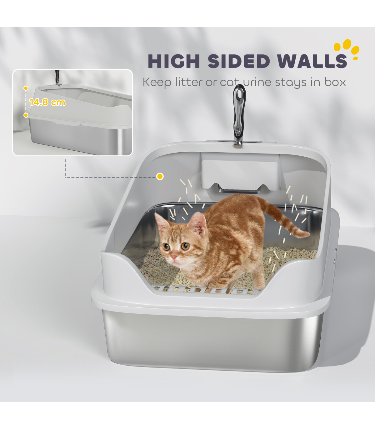 ? 12.4 cm high plastic sides prevent litter and urine from spilling outside