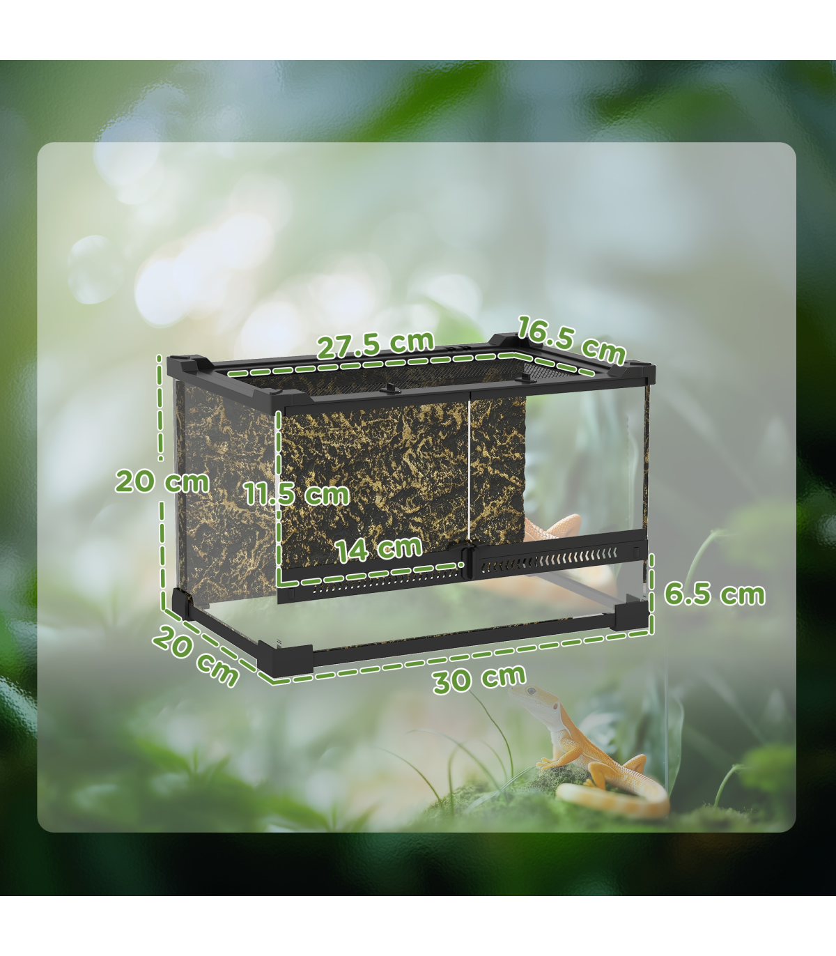 PawHut 10L Glass Terrarium, Reptile Vivarium with Stone Background, Black