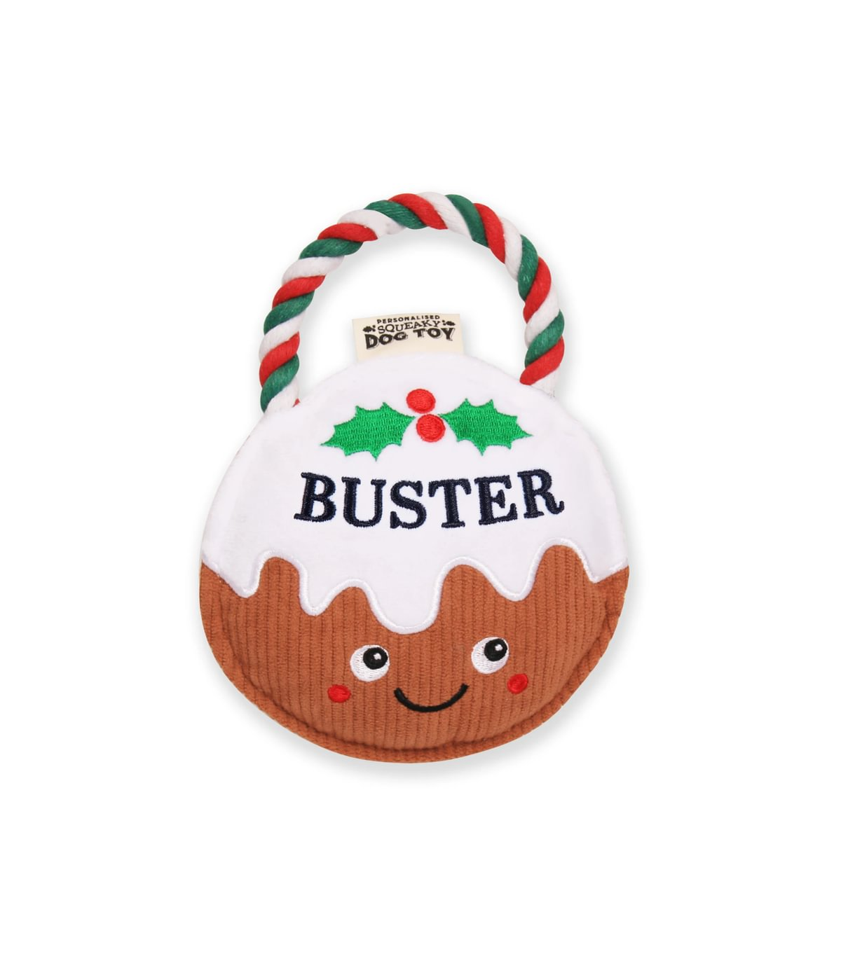Pre-personalised Christmas Pudding Squeaky Dog Toy Gift - Buster