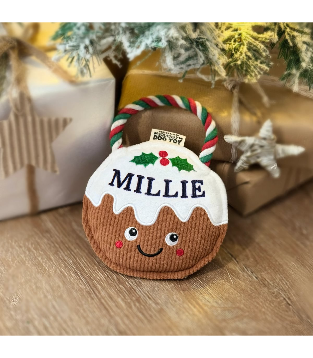 Pre-personalised Christmas Pudding Squeaky Dog Toy Gift - Millie