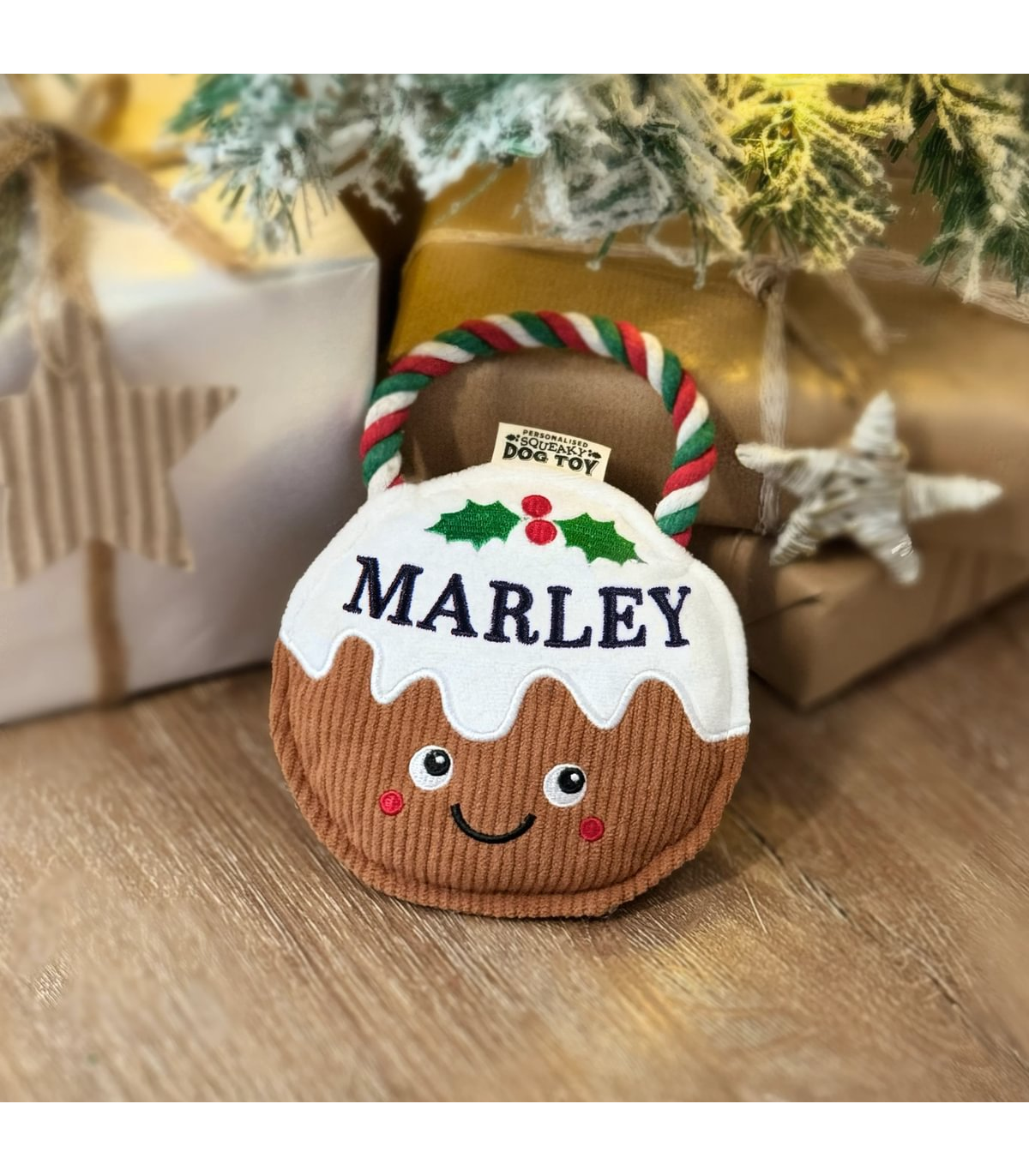 Pre-personalised Christmas Pudding Squeaky Dog Toy Gift - Marley