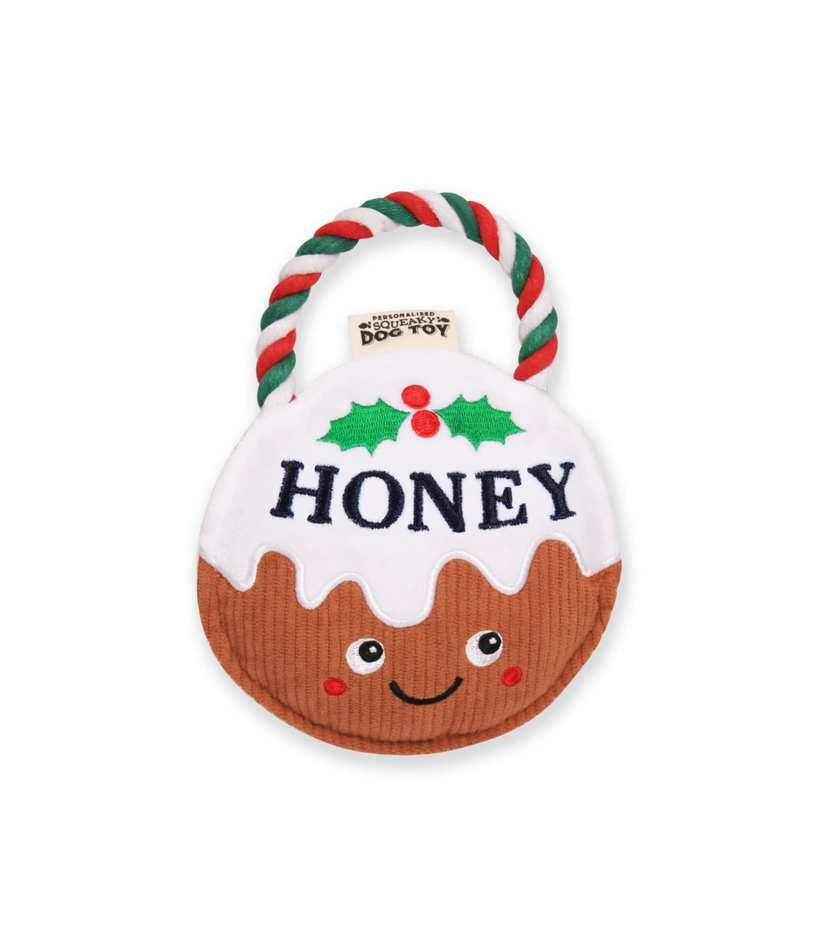 Pre-personalised Christmas Pudding Squeaky Dog Toy Gift - Honey