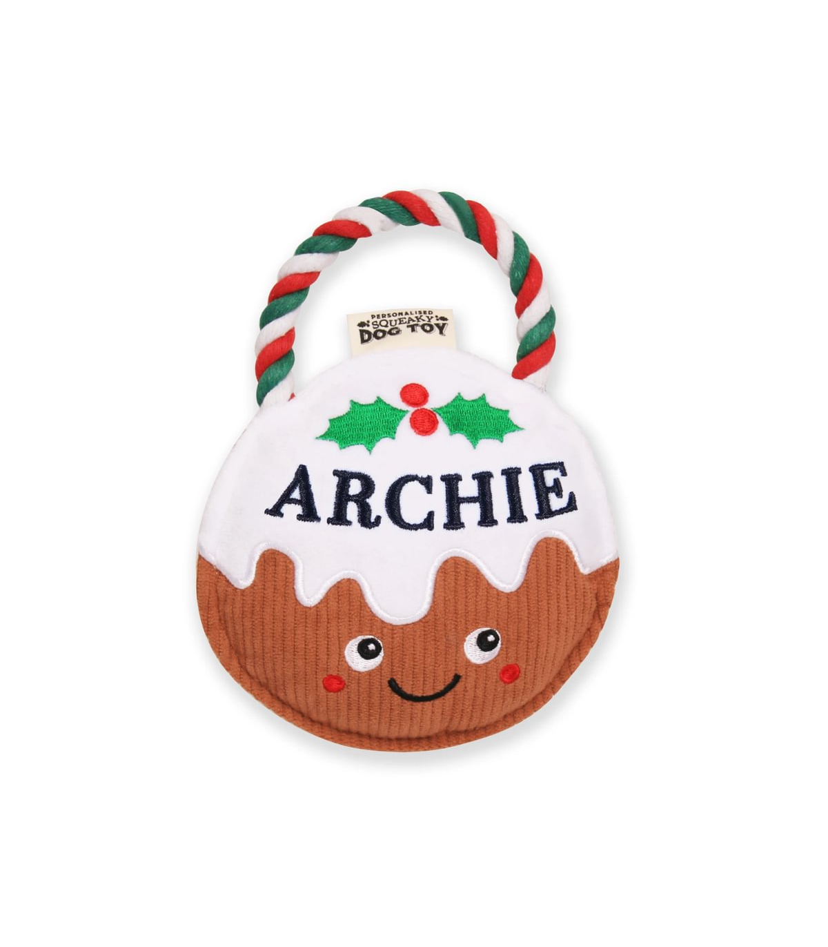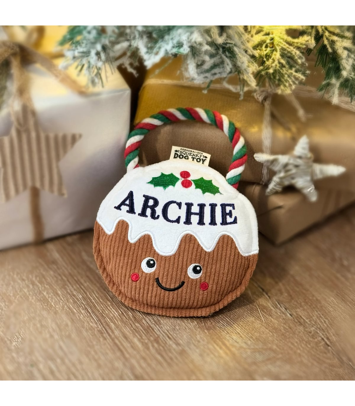Pre-personalised Christmas Pudding Squeaky Dog Toy Gift - Archie