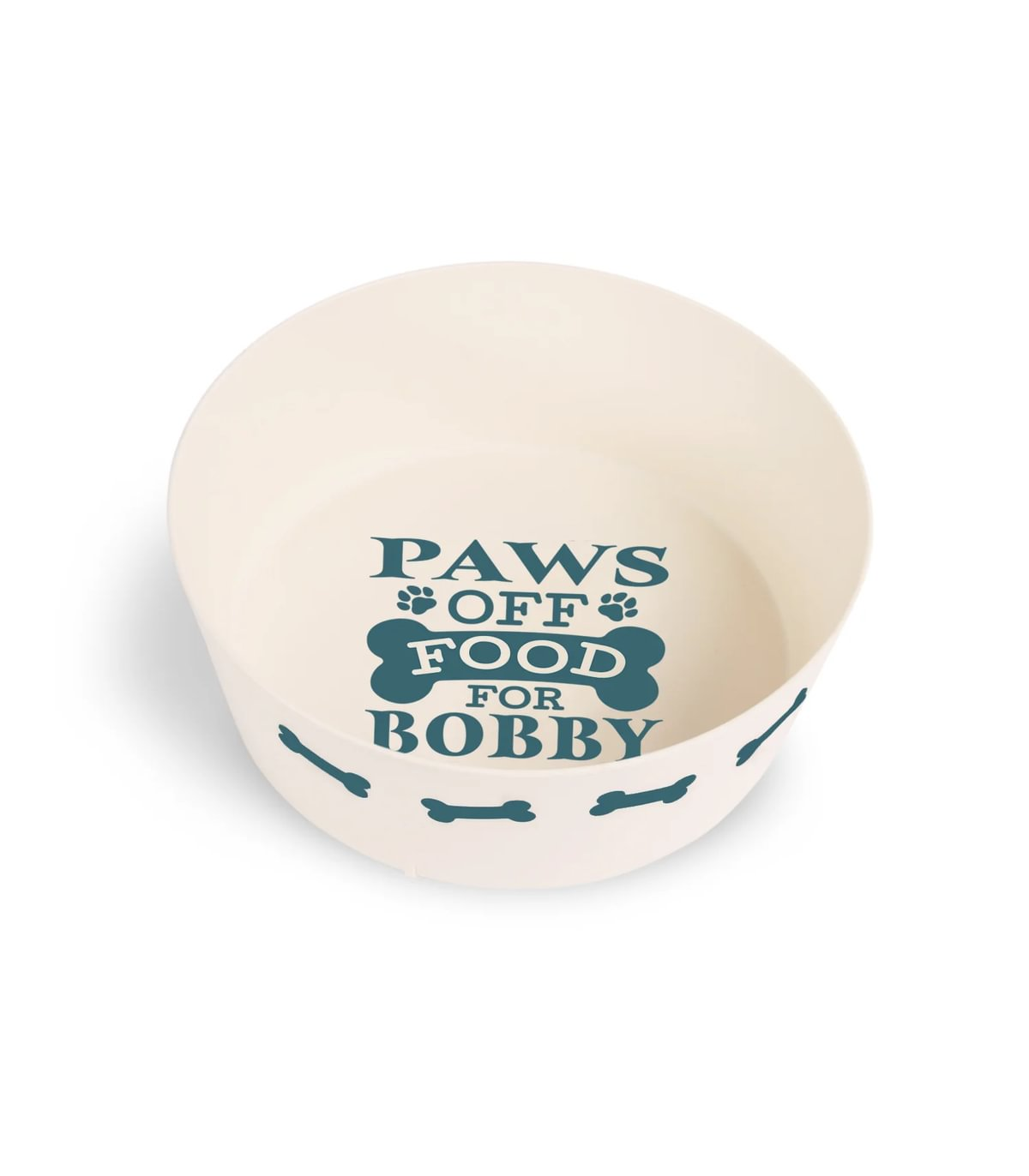 Add a personal touch to your best friends' mealtime with a personalised food bowl. In cream and grey colourways the bowls feature popular dog names and fun sentiment. With a non-slip ring on the base of the bowl to prevent slipping and made from recycled bottles and other waste materials. The personalised dog bowl is not only practicalit's a unique and fun way to celebrate your dog's personality every day. So, not only are you making sustainable choices but you're also making mealtimes fun for your most favourite family member. Why not check out the matching lead hooks and treat jars too! PLEASE NOTE: These items are pre-personalised. The item you receive is the name or title that you have selected. Items are not personalised to order and we do not offer bespoke customisation.