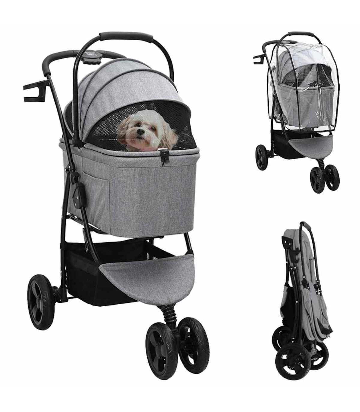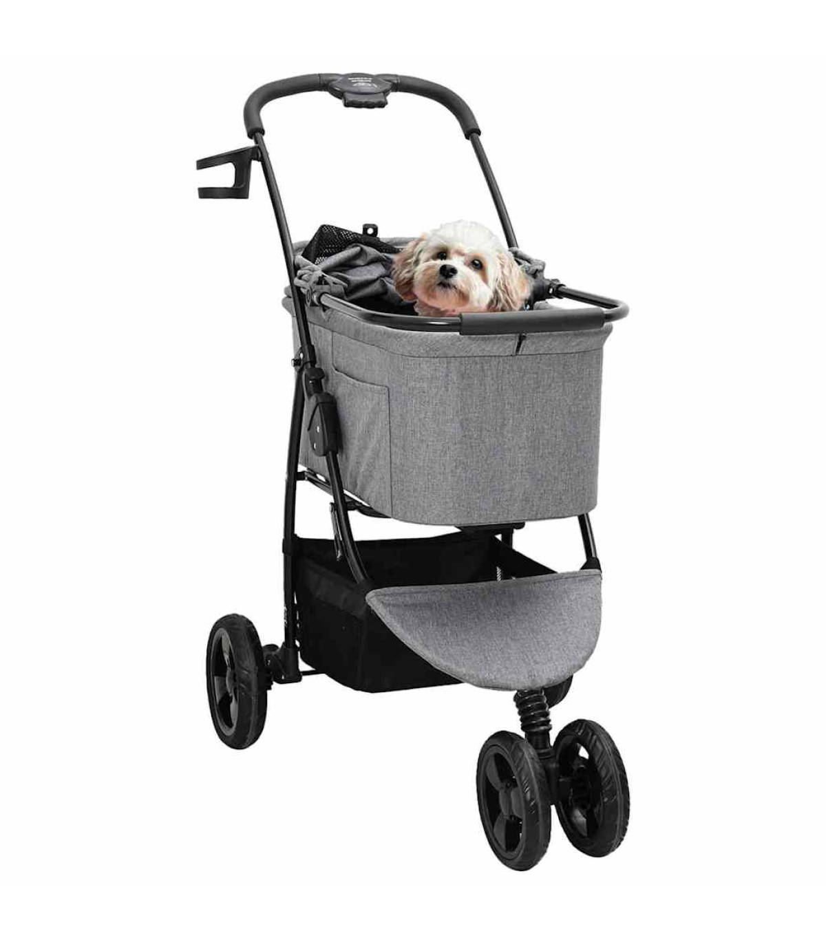 Check out the modern Folding Pet Stroller that mixes functionality with style, making walks in the park or city trips a breeze. It’s built for both dogs and cats and offers a slick, practical way to get around with your pet. Covered in tough 600D Oxford fabric and featuring a foldable steel frame, this stroller keeps your pet comfy and safe while making it easy for you to travel. With a nice look, it turns everyday pet walks into stylish outings, whether you’re chilling or exploring the city. Top-Notch Materials: Built from high-quality 600D Oxford fabric, this stroller is both durable and good-looking. The water-resistant polyester keeps it safe from light showers and spills, so it stays in tip-top shape. The steel frame gives solid support, creating a safe spot for your pets even on bumpy paths. Smart Features: The stroller has comfy wheels designed for smooth rides and less shaking. These wheels make it easy to stroll over all sorts of surfaces, keeping your pets chill while they ride. Plus, the whole thing folds down easily, making for a doddle to transport and tuck away. Flexible Design: This stroller fits right in for both city and country life. Whether you’re weaving through crowded streets or hitting nature trails, its lightweight design means you can keep things relaxed. The sensitive brakes add to the safety, letting you stop quickly when needed. Multi-Functional: Use this stroller indoors or outdoors; it’s perfect for day trips, shopping, or just wandering in the garden. The modern style keeps it low-key while giving you top-notch practicality. Easy-Peasy Care: Keeping this pet stroller clean is straightforward. Just wipe away dirt or stains with a damp cloth, and skip the harsh chemicals. Regular care keeps the fabric looking fresh and stretches its life, ensuring you can enjoy many fun times with your pets. WARNING. For pets only. Do not leave pet In stroller unattended.