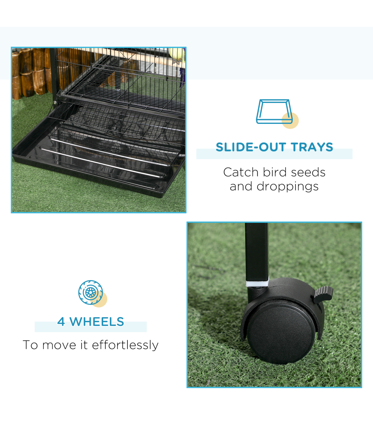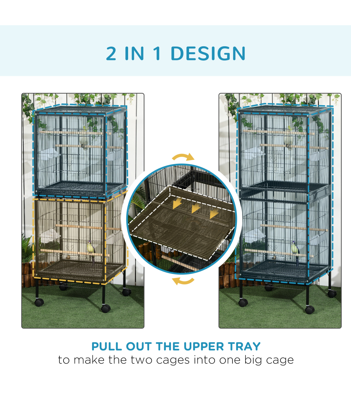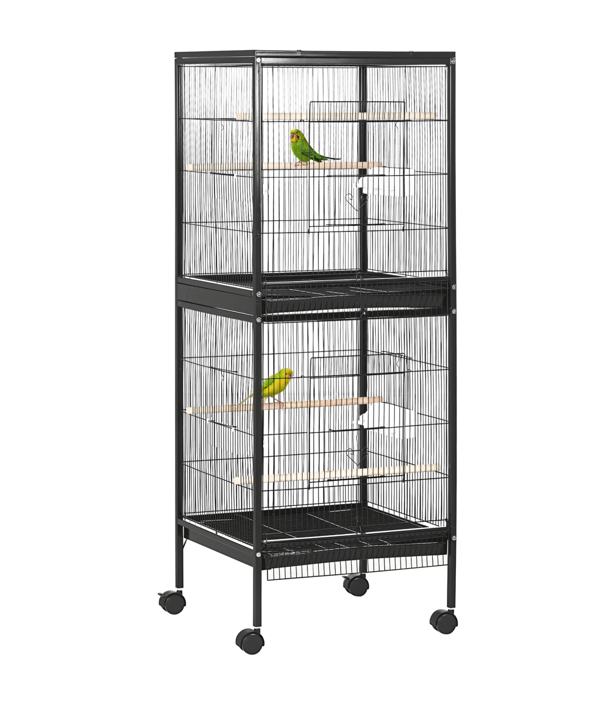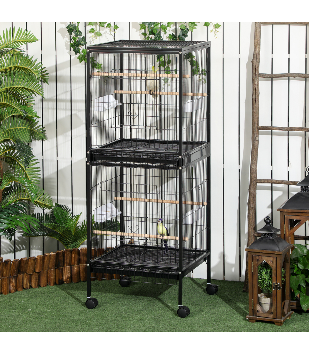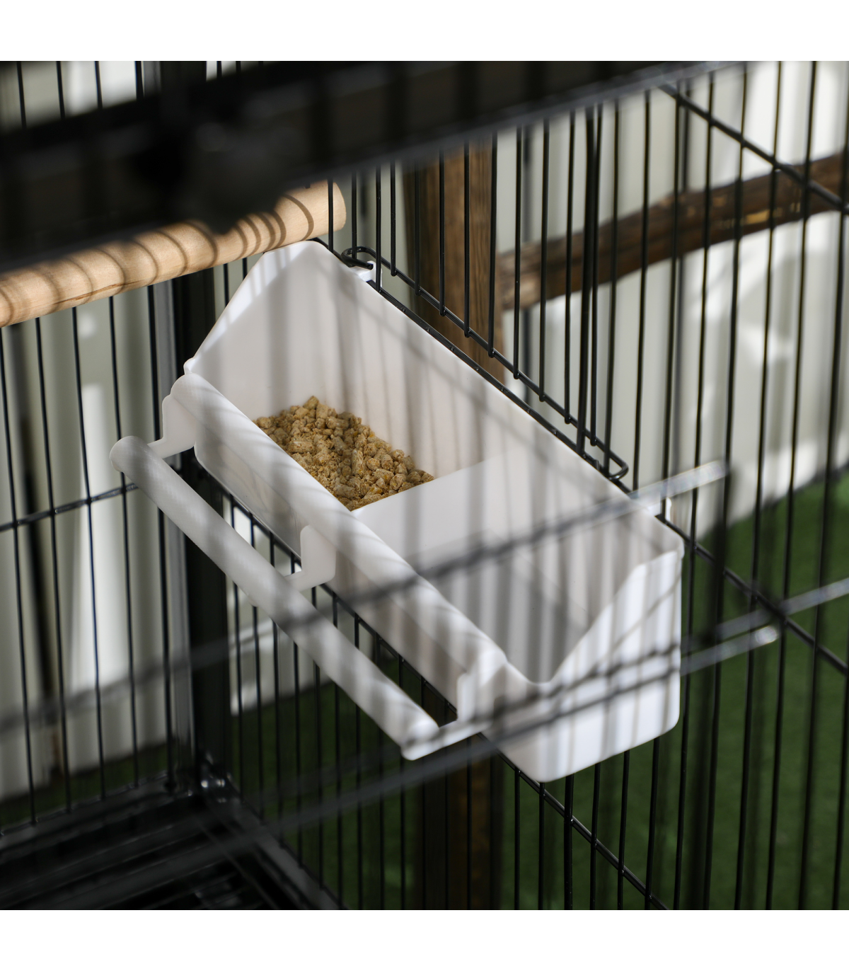 ● Includes wooden perches and plastic food containers